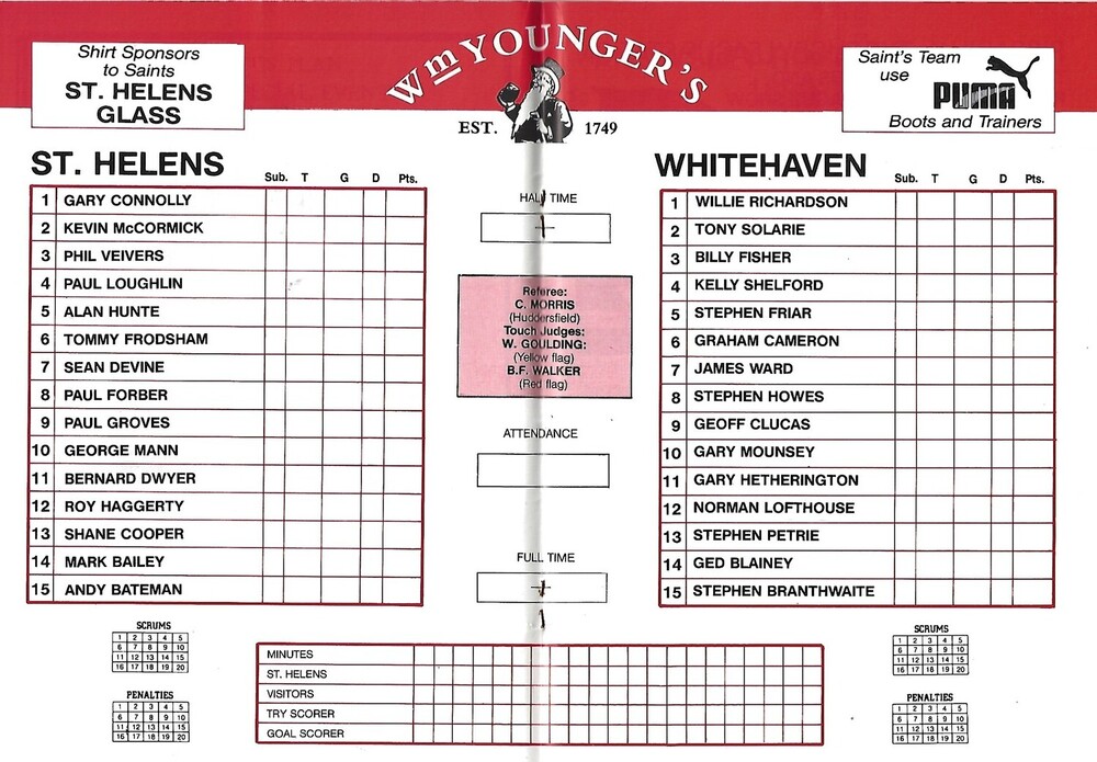 1989/90 St. Helens v Whitehaven Rugby League Challenge Cup 3rd Round Programme
