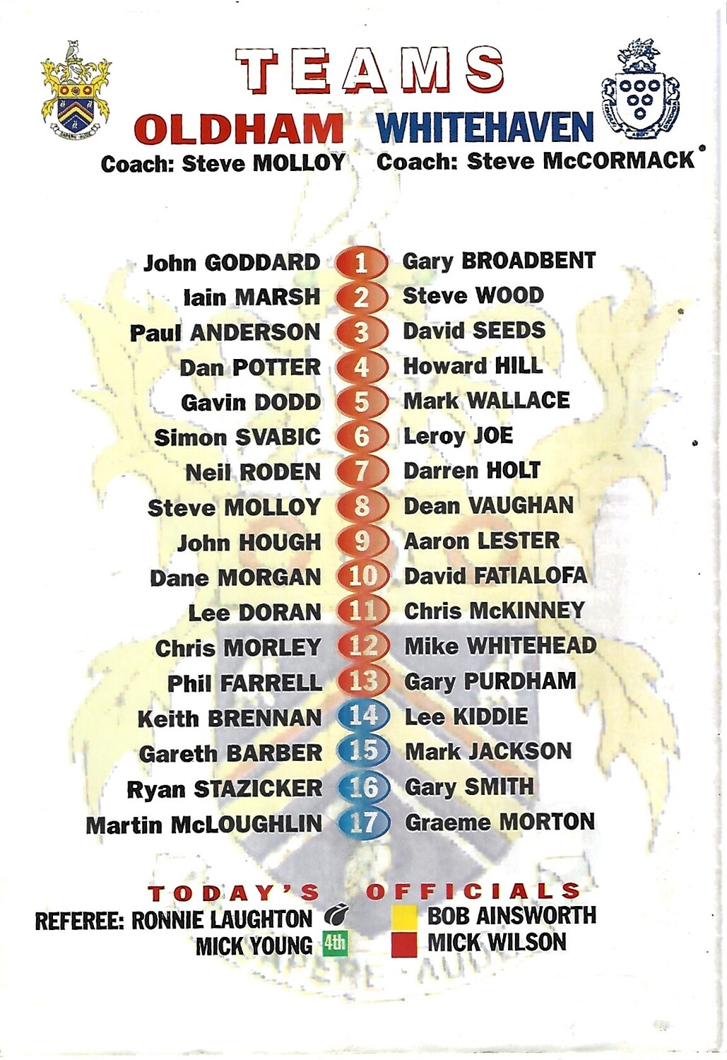 2003 Oldham v Whitehaven Rugby League Programme