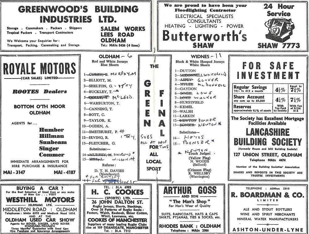 Vertical fold, creasing, discoloration, score in ink on front page, score/team changes in ink on team line up page (as per photo).