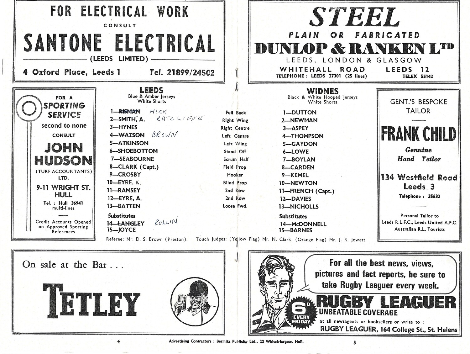 1967/68 Leeds v Widnes (19/04/1968) Rugby Football League Championship Play-Off Rugby League Programme