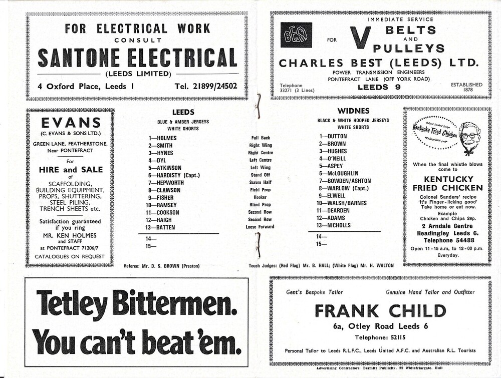 1971/72 Leeds v Widnes (29/04/1972) Rugby League Championship Play Off Quarter Final programme