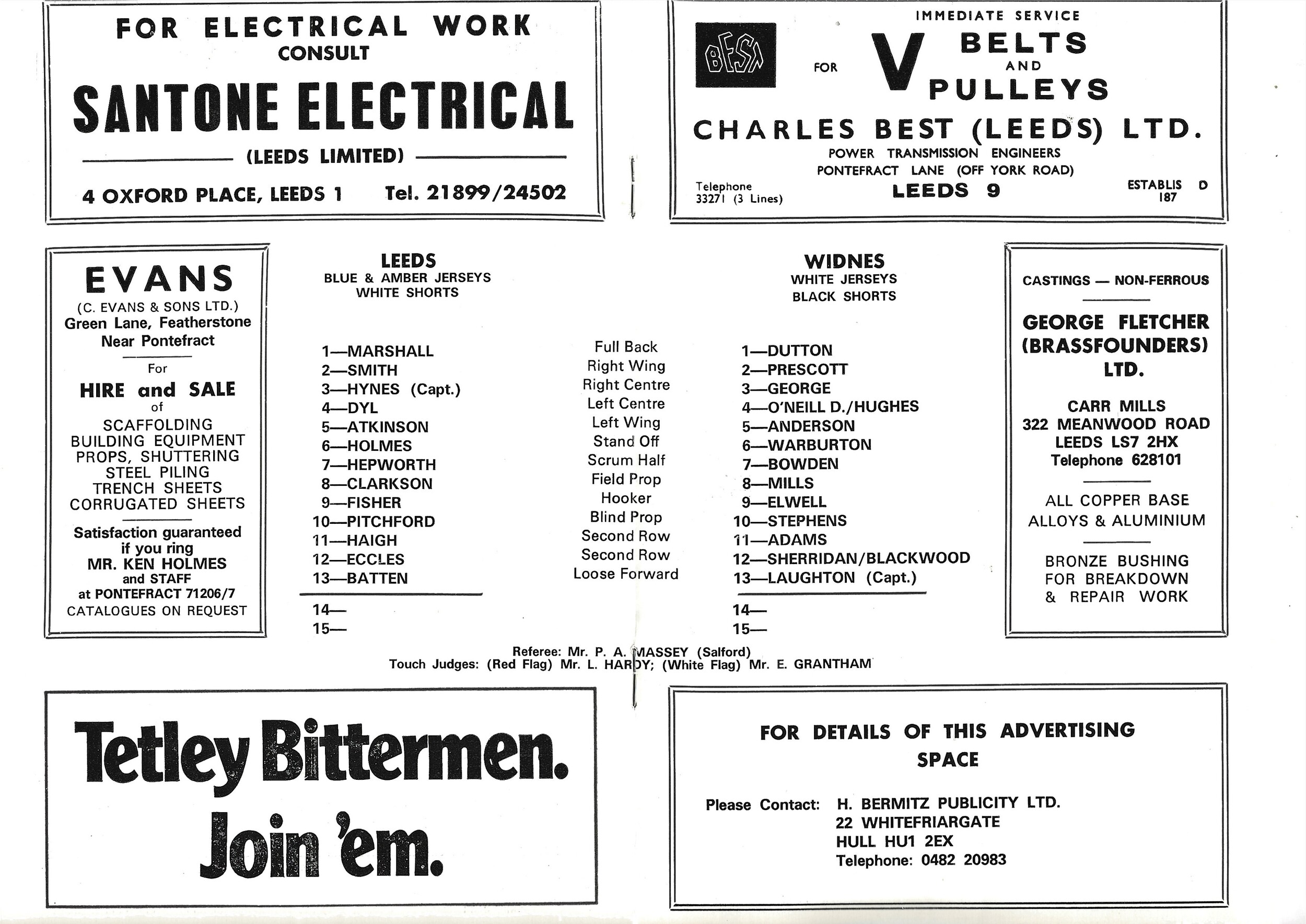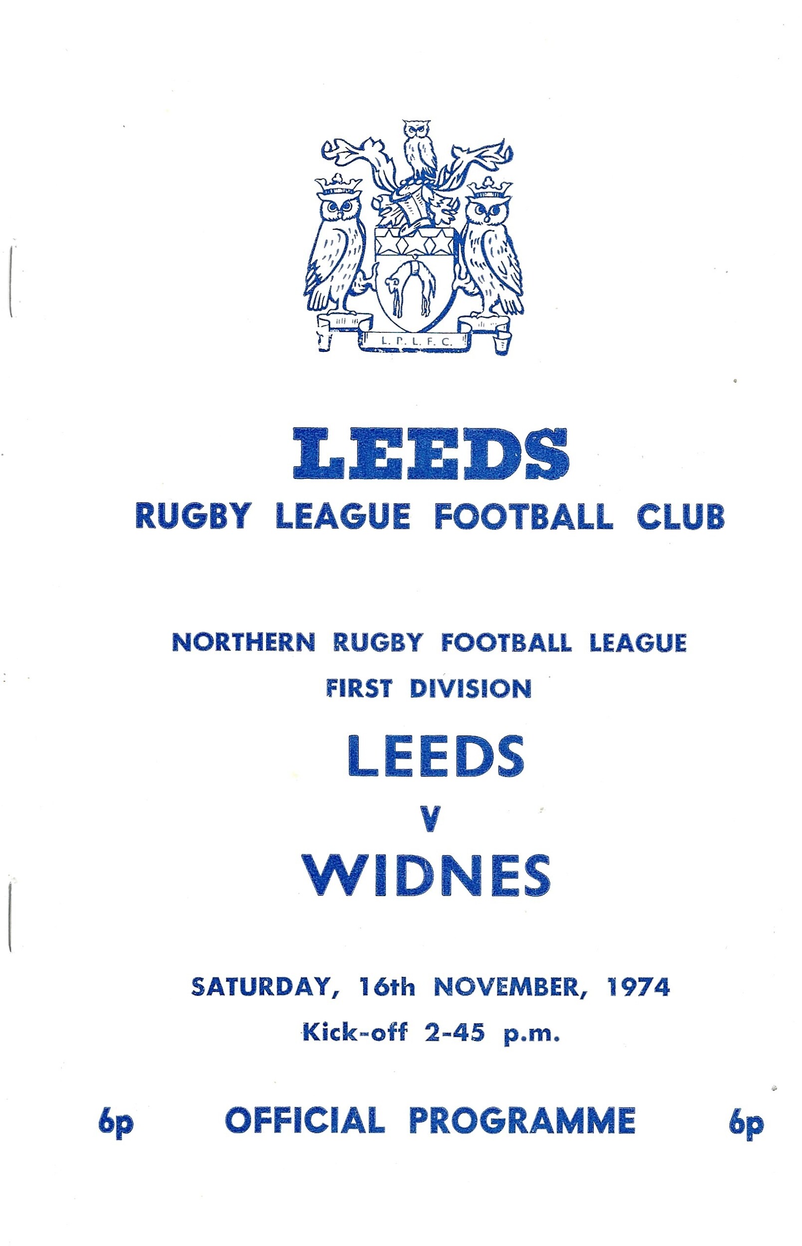 1974/75 Leeds v Widnes (16/11/1974) Rugby League Programme