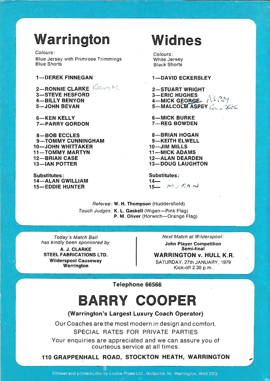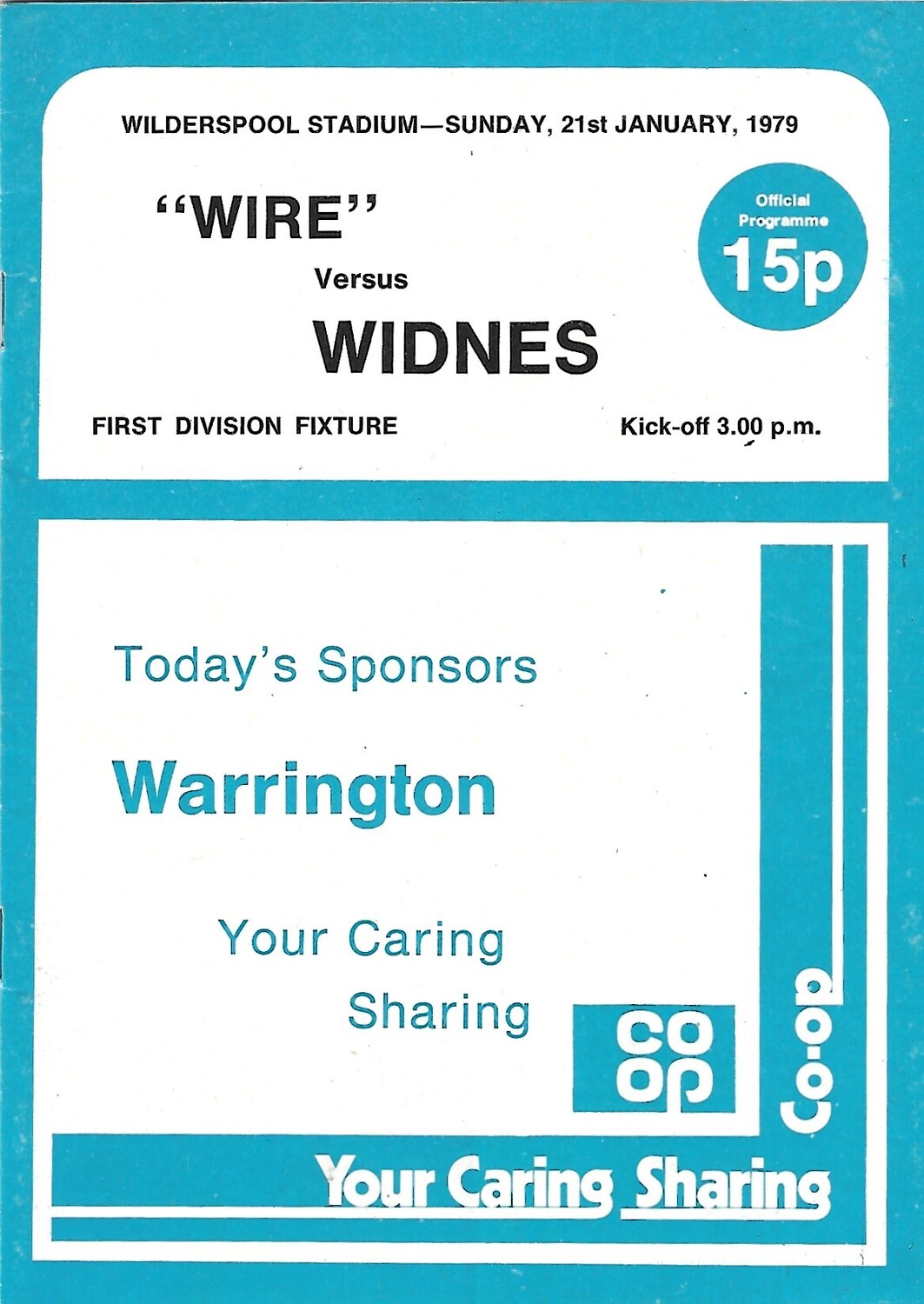 1978/79 Warrington v Widnes Rugby League Programme