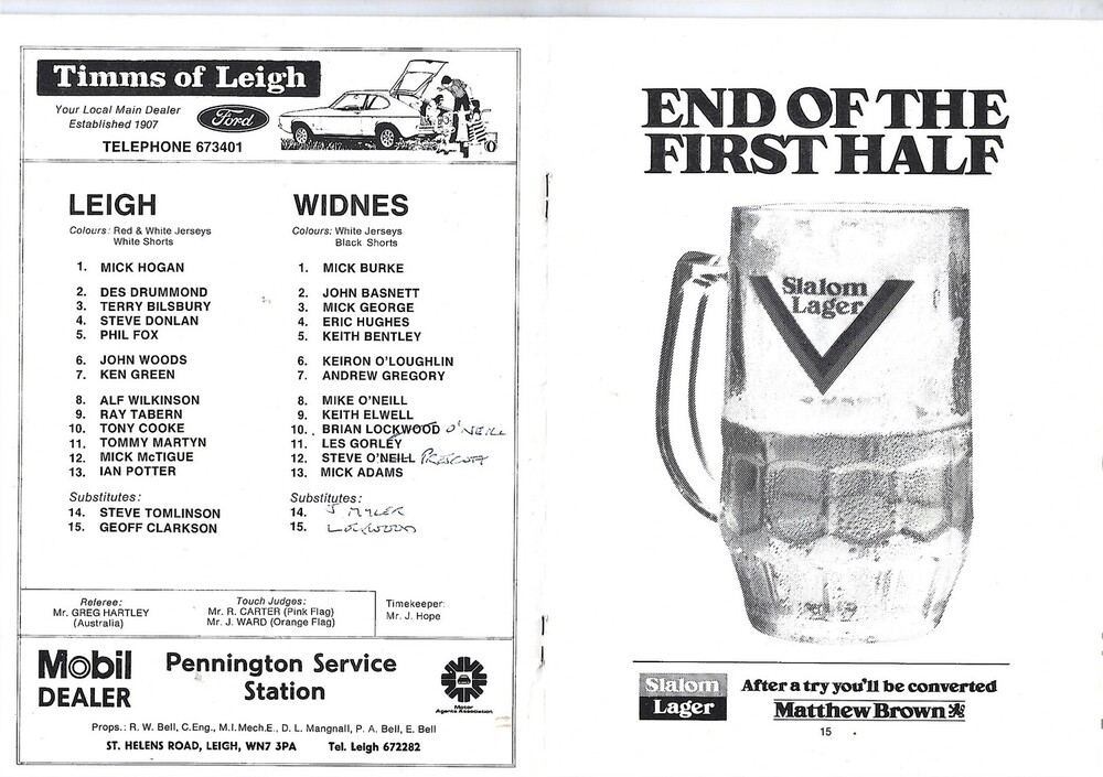Slight creasing, team changes in ink on team line up page (as per photo).