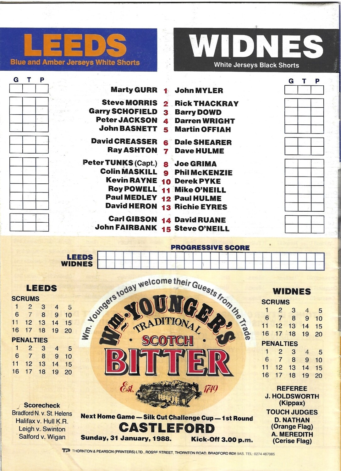 1987/88 Leeds v Widnes (17/01/1988) Rugby League programme