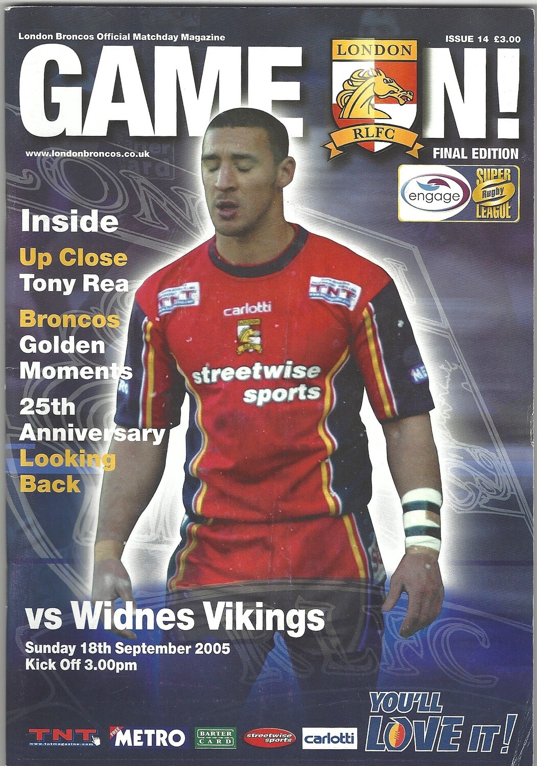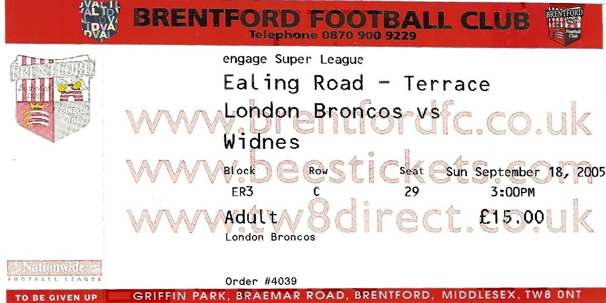 2005 London Broncos v Widnes Vikings Rugby League programme & Match Ticket
