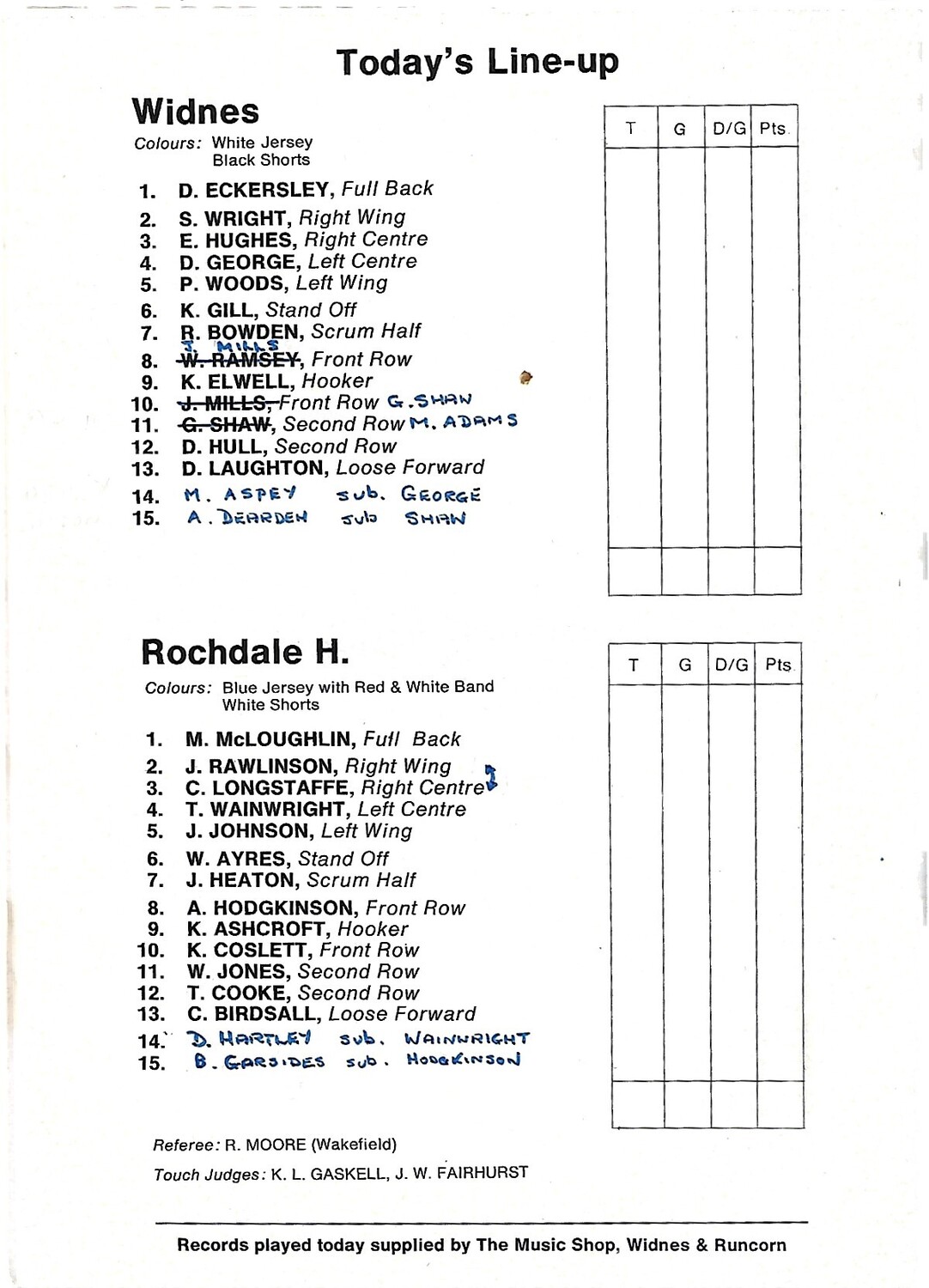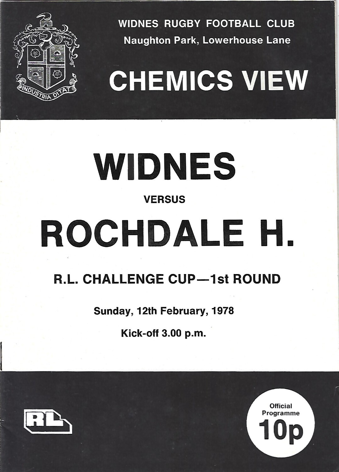 1977/78 Widnes v Rochdale Hornets Rugby League Challenge Cup 1st Round Programme