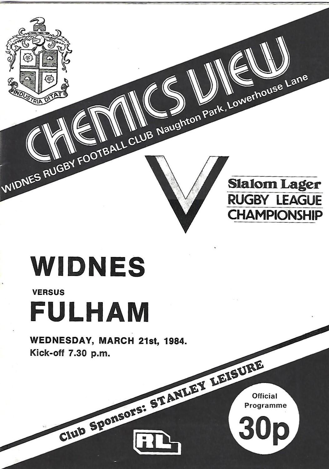 1983/84 Widnes v Fulham Rugby League Programme