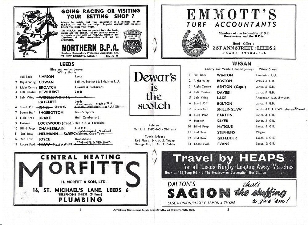 Slight creasing, discoloration, rusty staples/staining, score/team changes in ink on team line up page (as per photo).