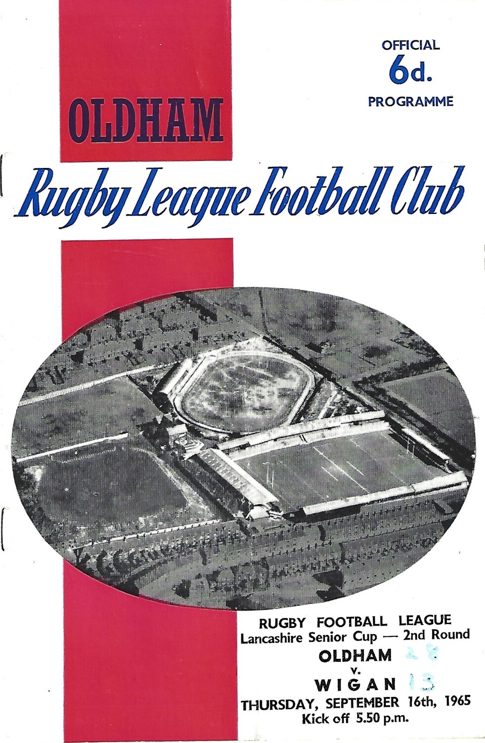 1965/66 Oldham v Wigan Lancashire Senior Cup 2nd Round Rugby League Programme