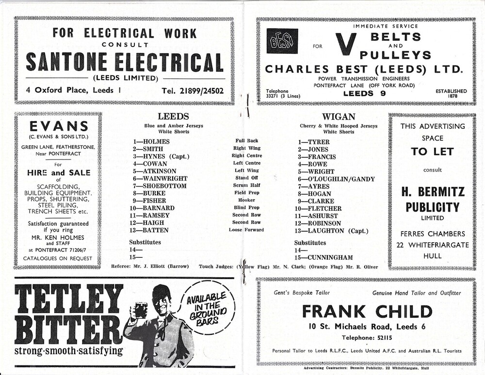 1970/71 Leeds v Wigan (29/03/1971) Rugby League programme