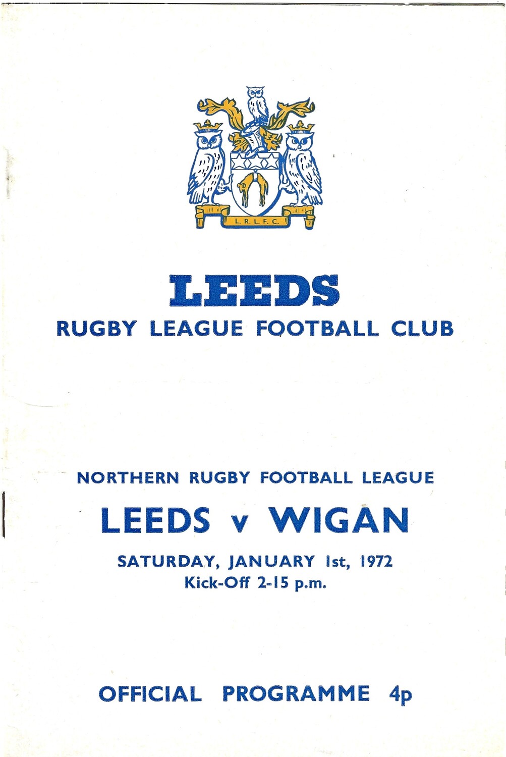 1971/72 Leeds v Wigan (01/01/1972) Rugby League Programme