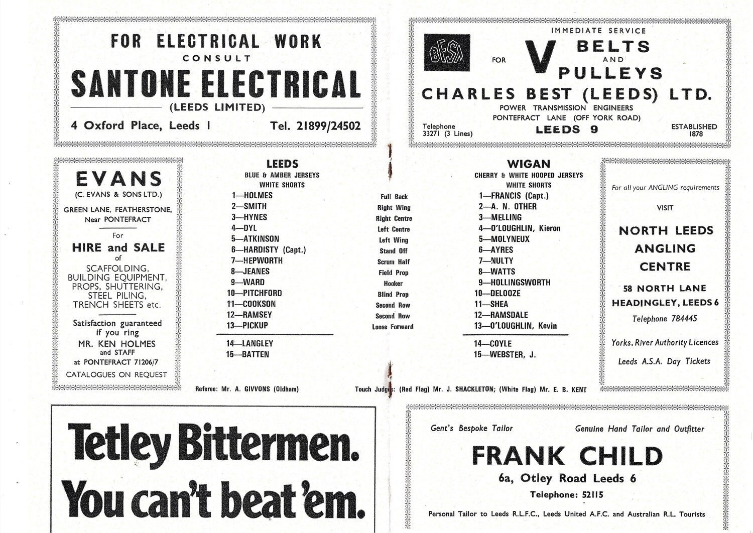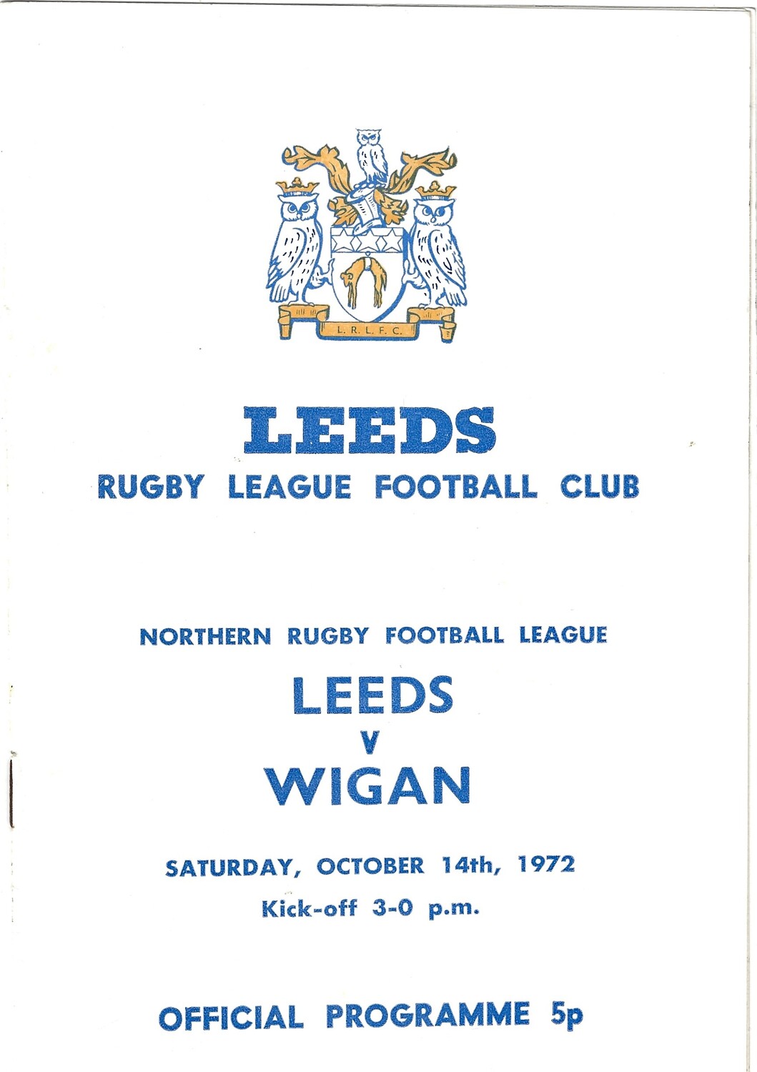 1972/73 Leeds v Wigan (14/10/1972) Rugby League Programme