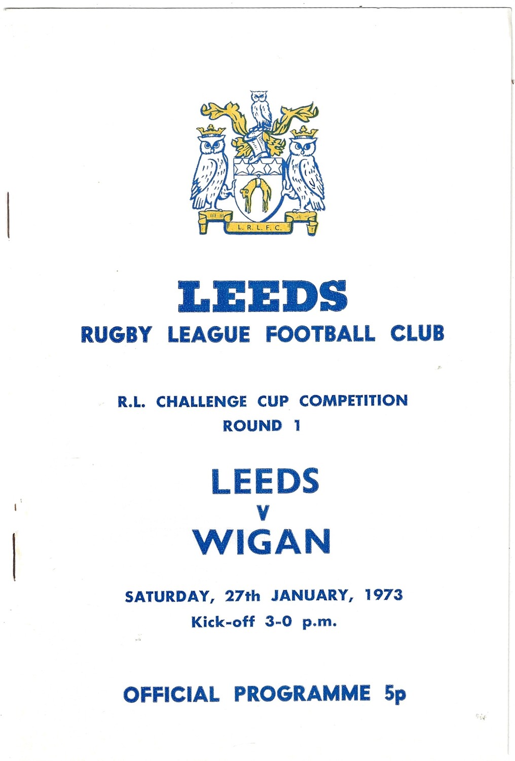 1972/73 Leeds v Wigan (27/01/1973) Rugby League Challenge Cup Competition Round 1 Rugby League Programme