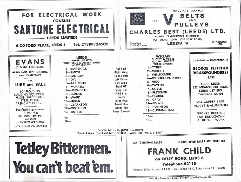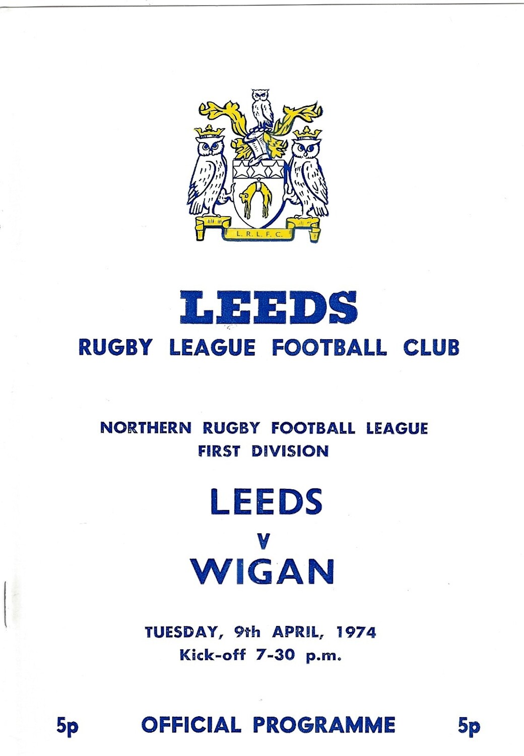 1973/74 Leeds v Wigan (09/04/1974) Rugby League programme