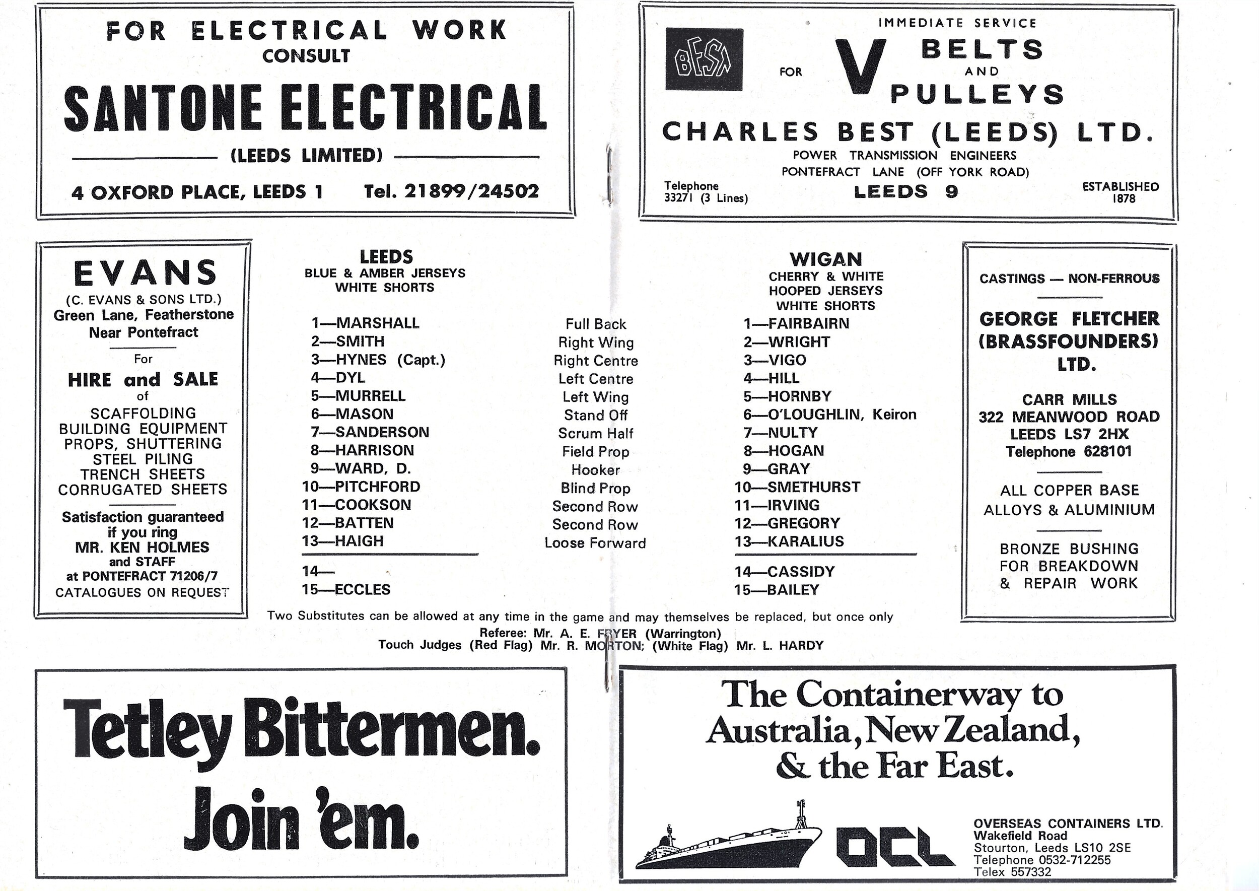 1974/75 Leeds v Wigan (01/03/1975) Rugby League Programme