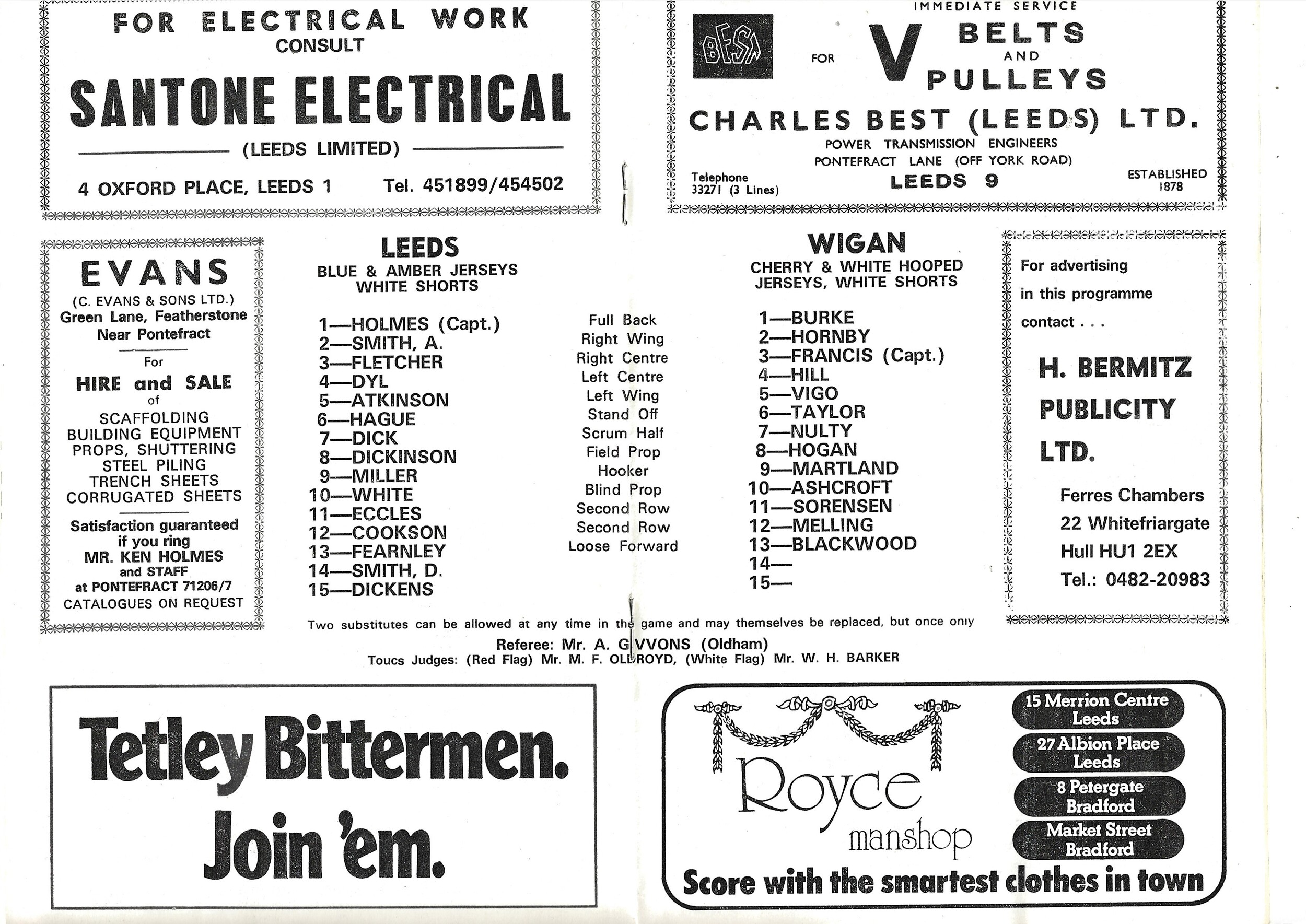1976/77 Leeds v Wigan (15/01/1977) Rugby League Programme