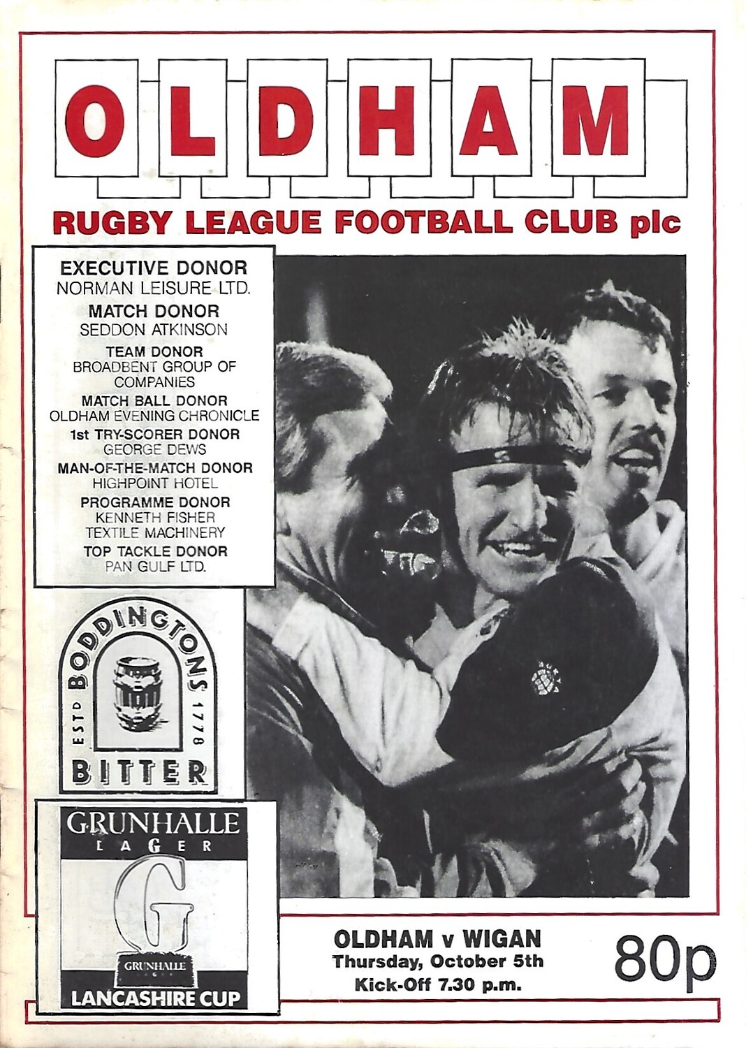 1989/90 Oldham v Wigan Grunhalle Lancashire Cup Rugby League Programme
