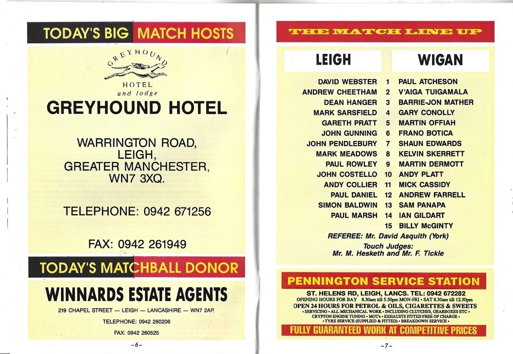 1993/94 Leigh v Wigan Rugby League Programme