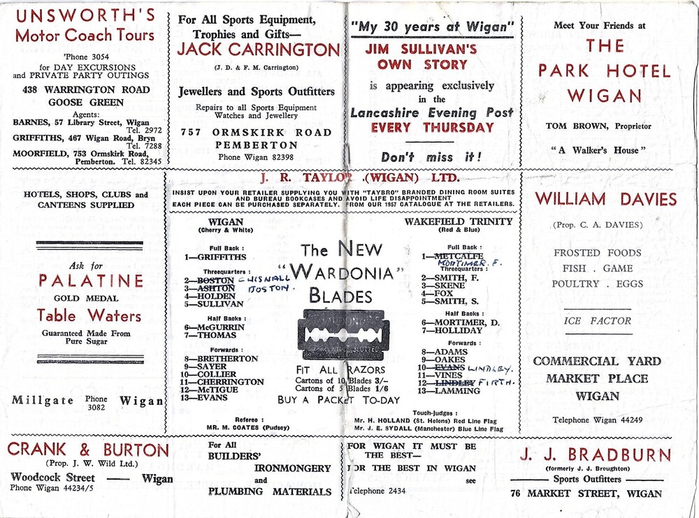 1958/59 Wigan v Wakefield Trinity Rugby League programme