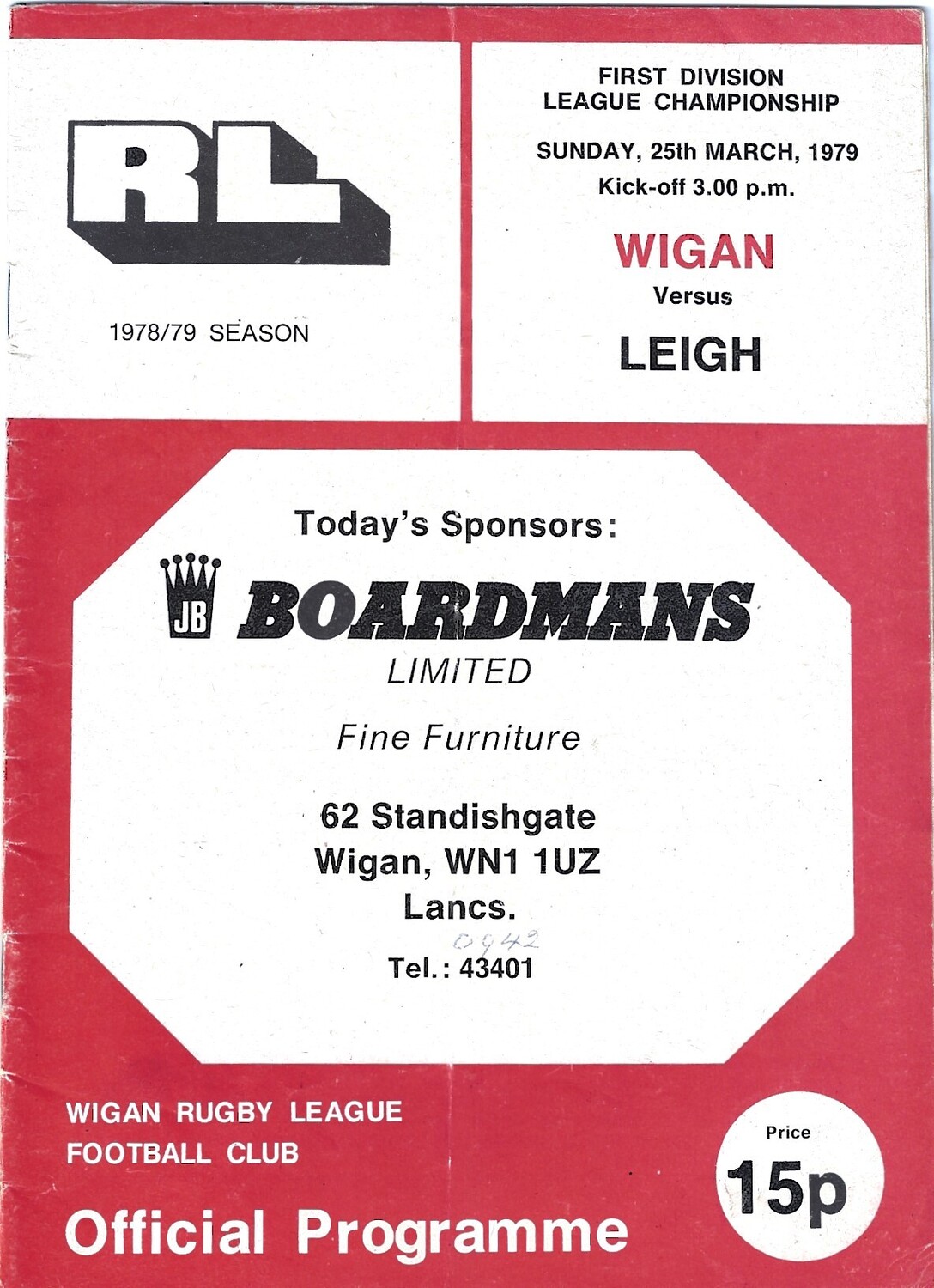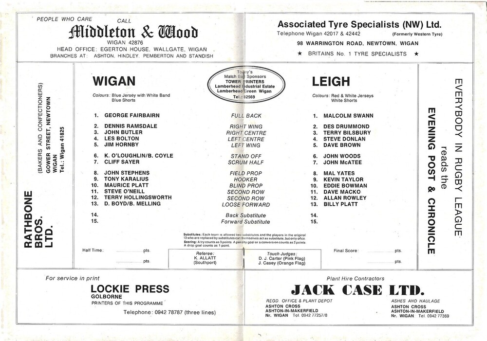 1978/79 Wigan v Leigh Rugby League Programme