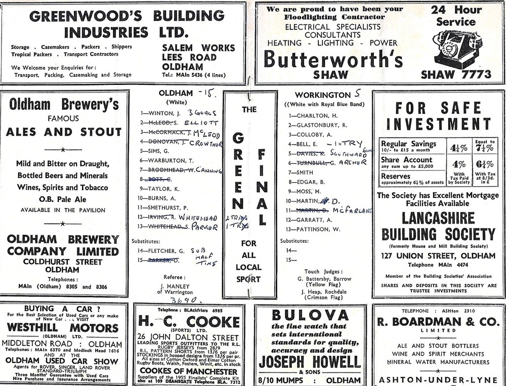 Vertical fold, creasing, discoloration, rusty staples/staining, score/team changes in ink on front cover & team line up page (as per photo).