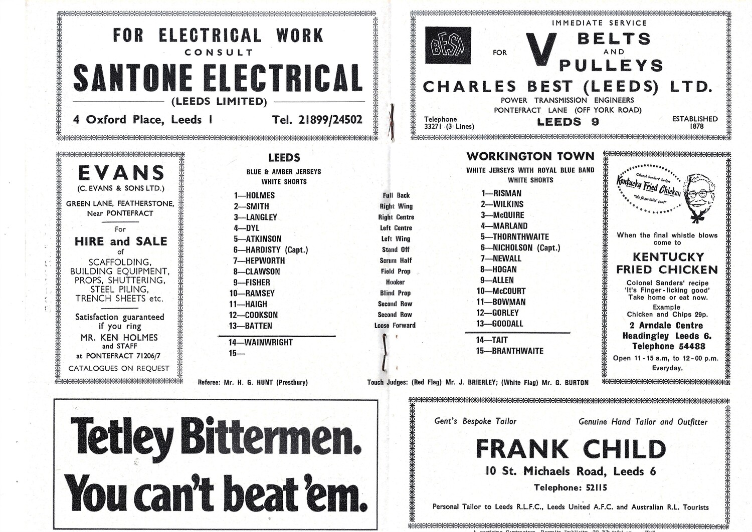 1971/72 Leeds v Workington Town (25/03/1972) Rugby League Programme