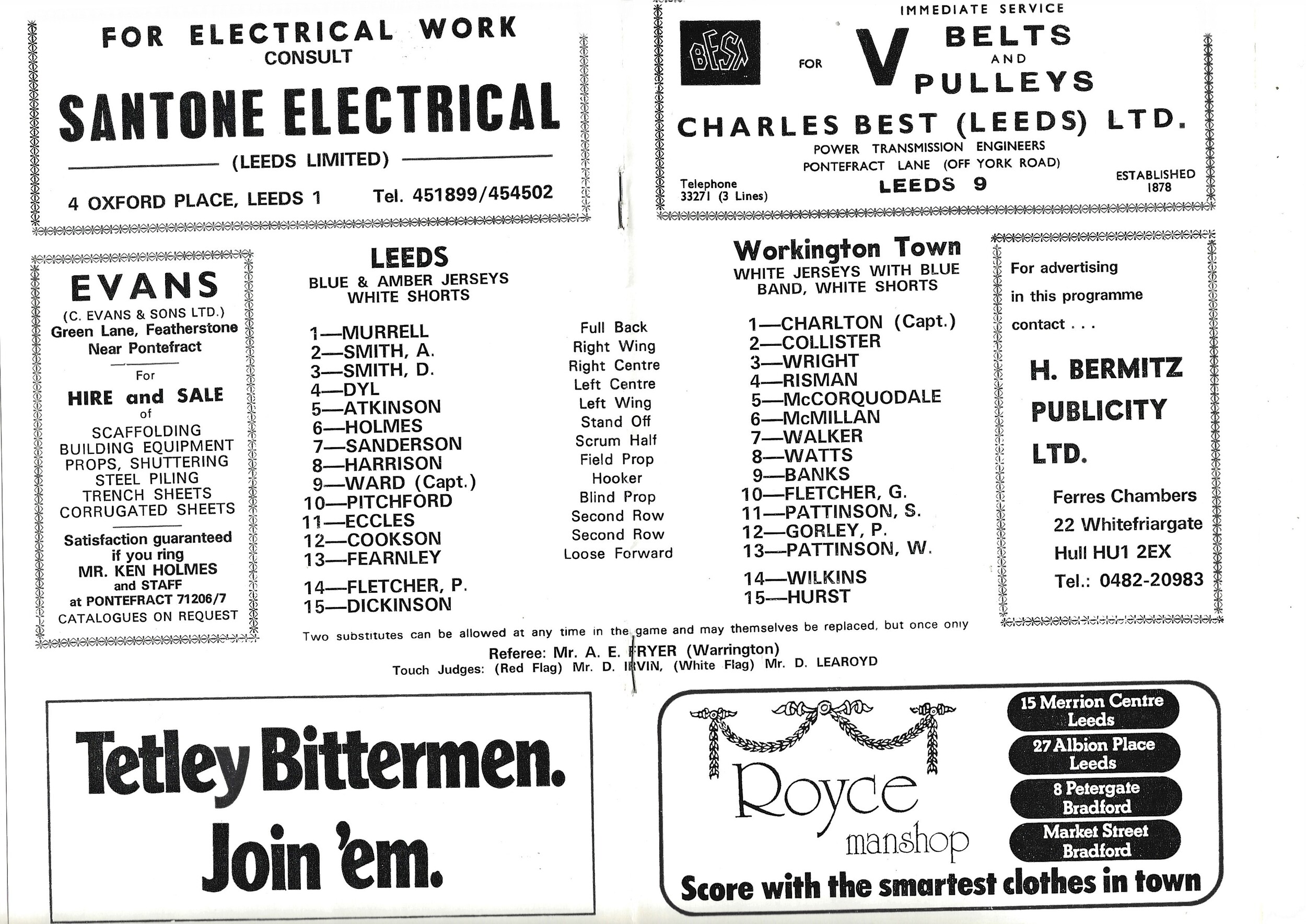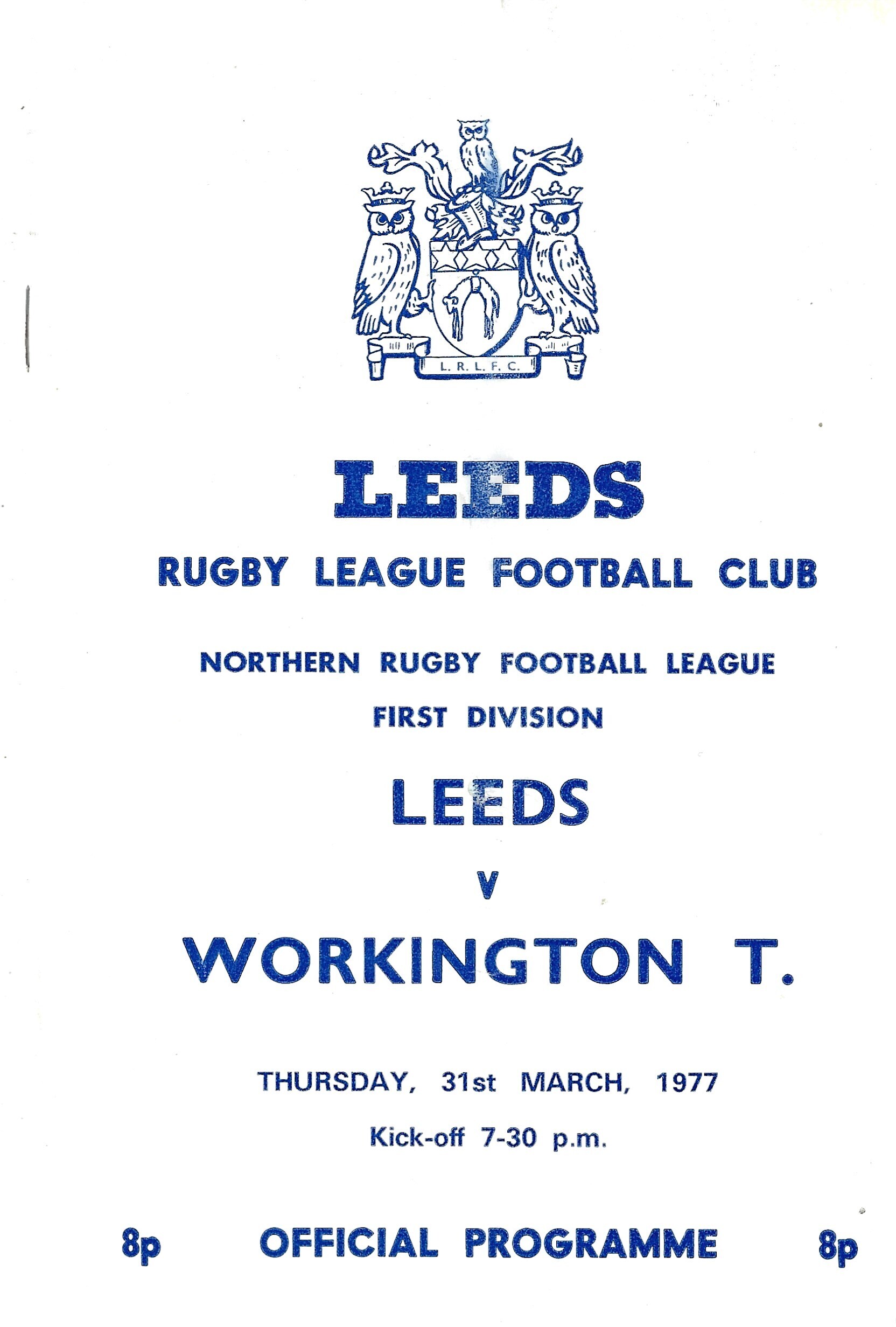 1976/77 Leeds v Workington Town (31/03/1977) Rugby League Programme