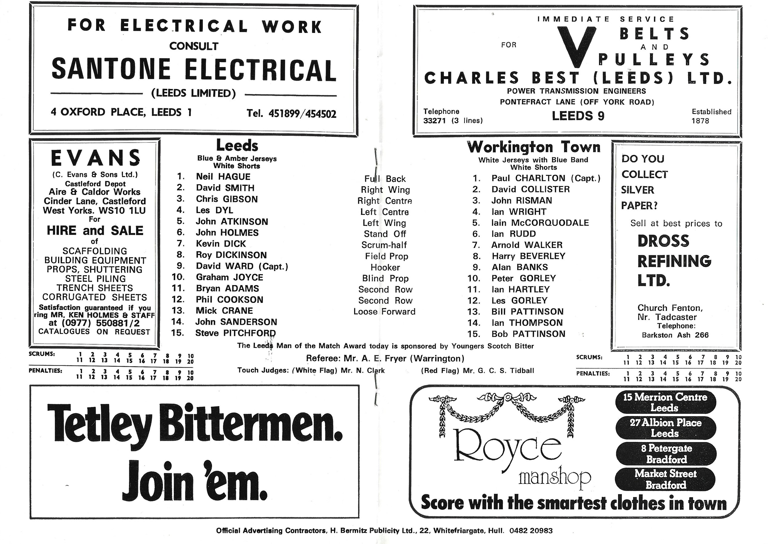 1978/79 Leeds v Workington Town (24/03/1979) Rugby League Programme