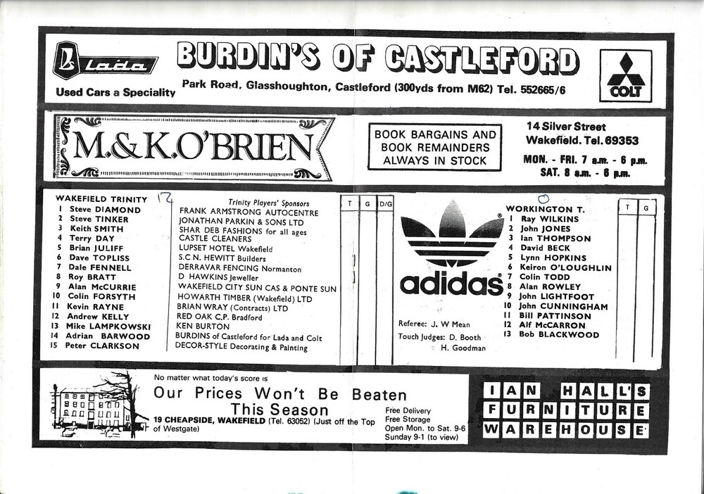 1980/81 Wakefield Trinity v Workington Town Rugby League programme