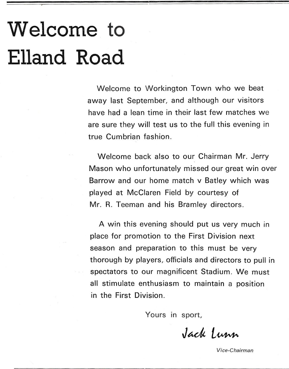 Teamsheet for rearranged fixture. No handwriting