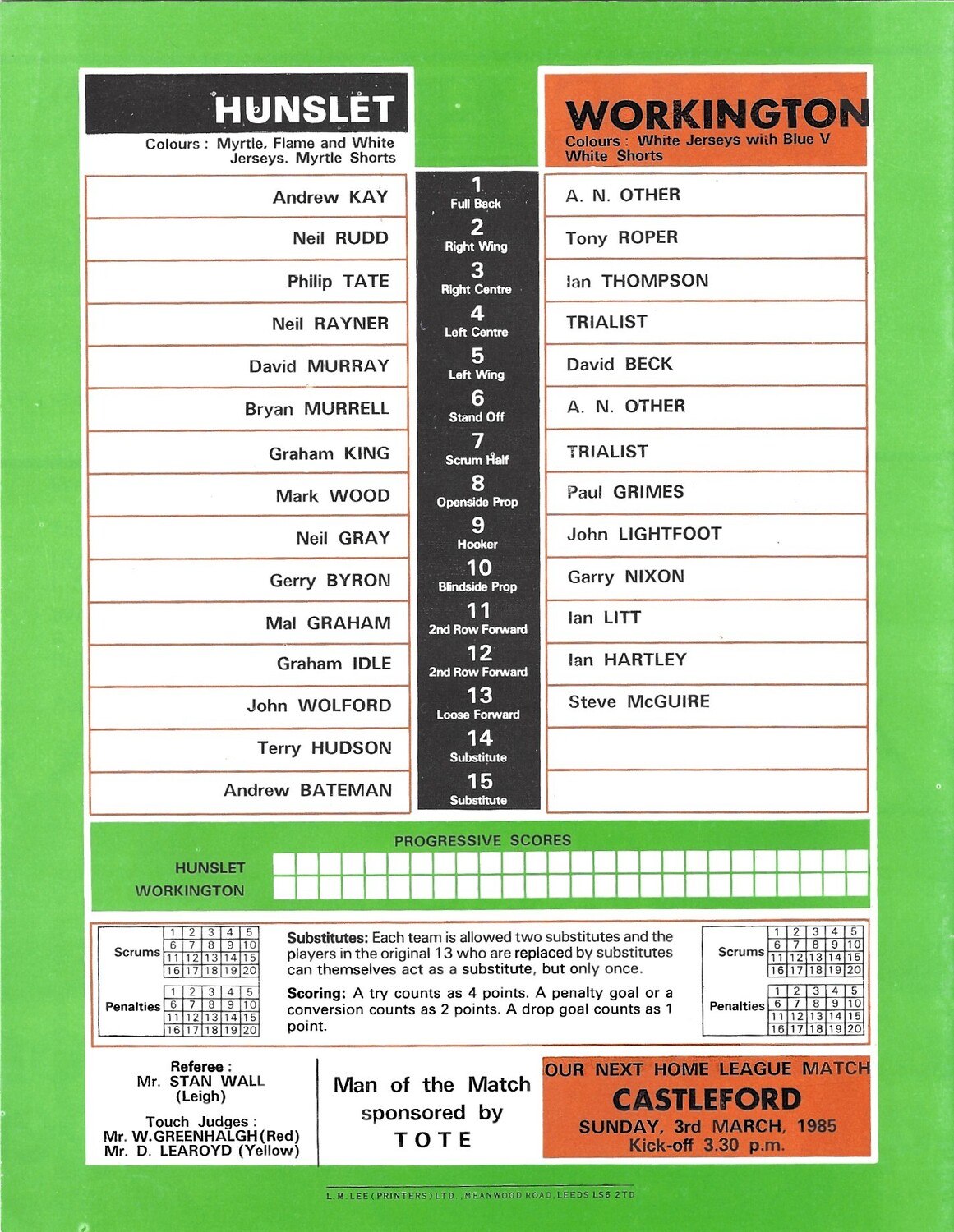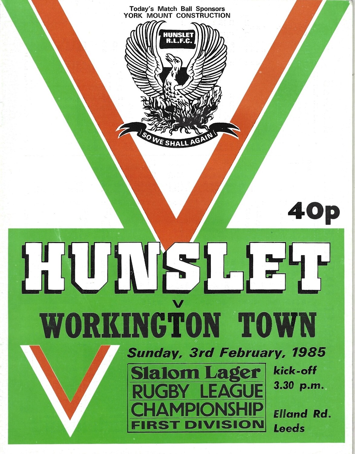1984/85 Hunslet v Workington Town Rugby League programme