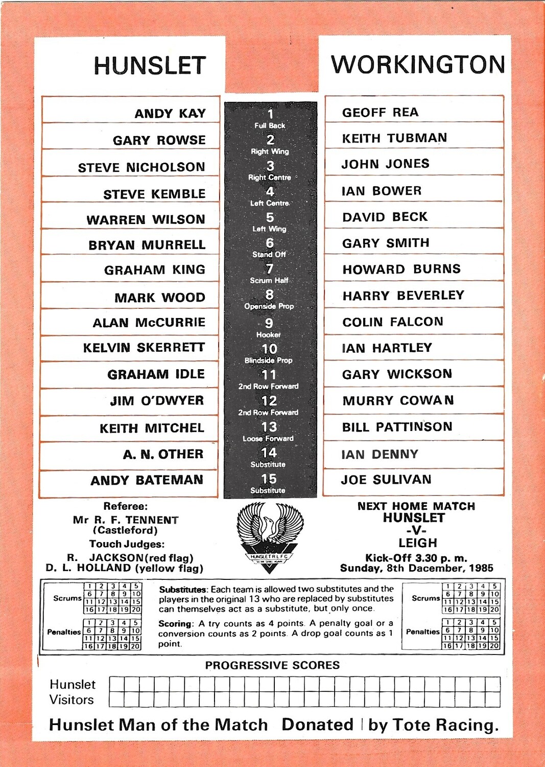 1985/86 Hunslet v Workington Town John Player Special Trophy 1st Round Rugby League programme