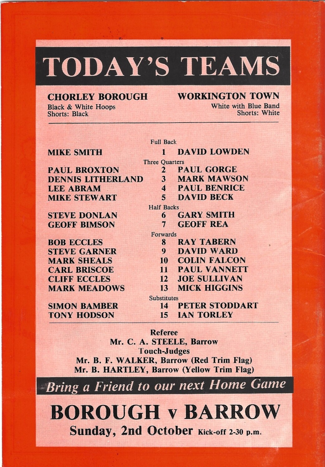 1988/89 Chorley Borough v Workington Town Rugby League programme