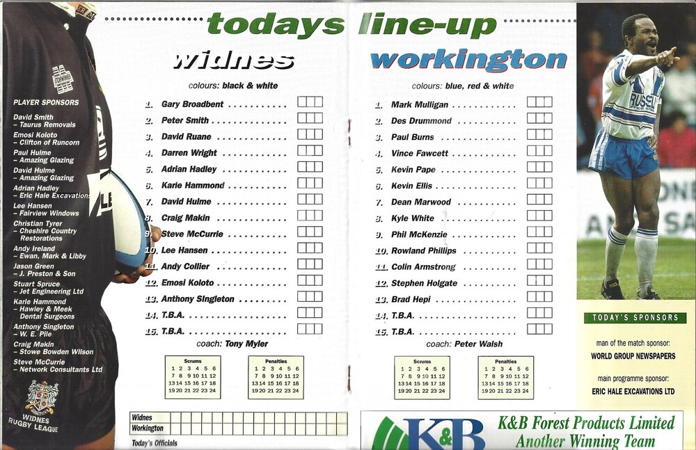 1994/95 Widnes v Workington Town Rugby League programme