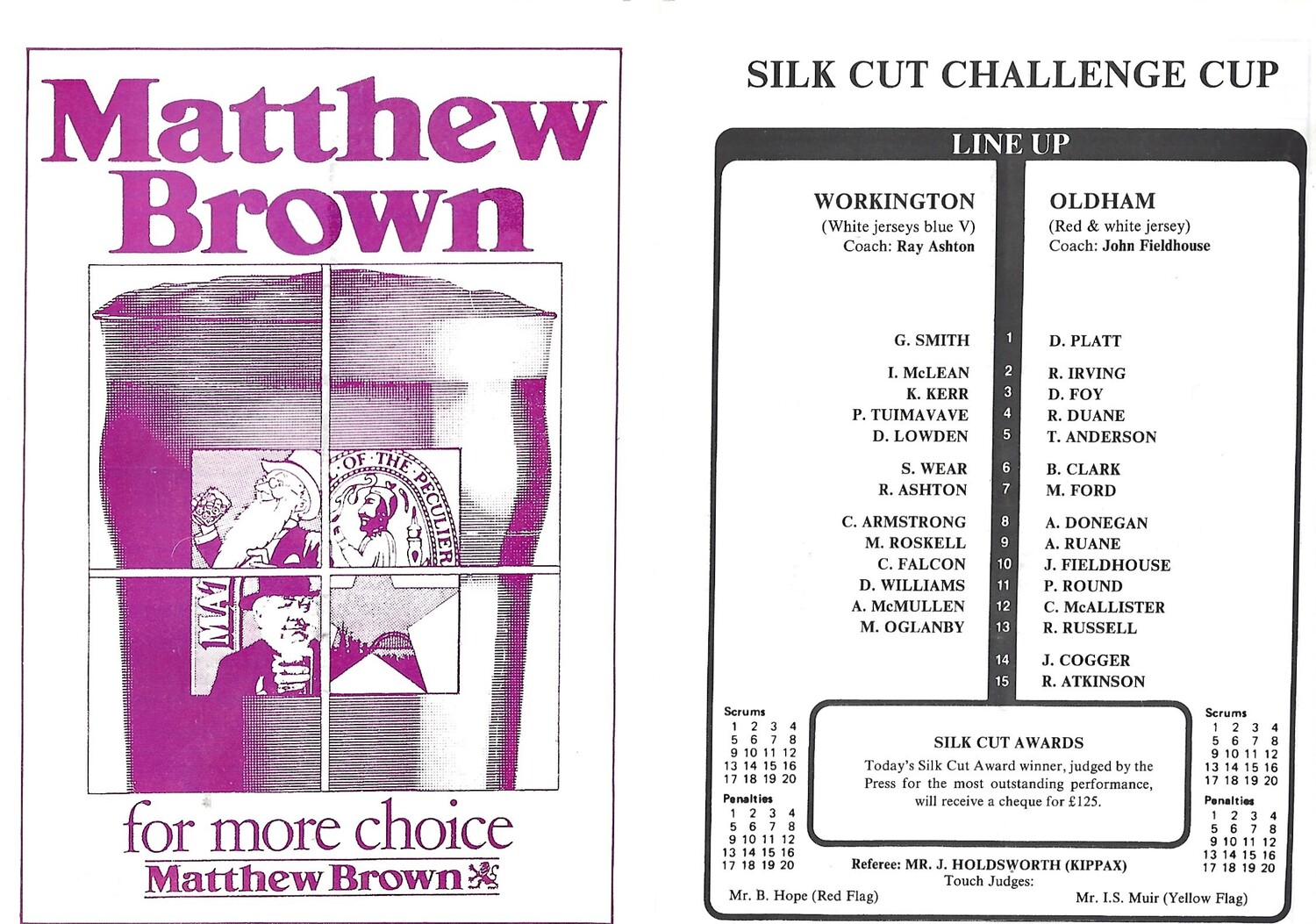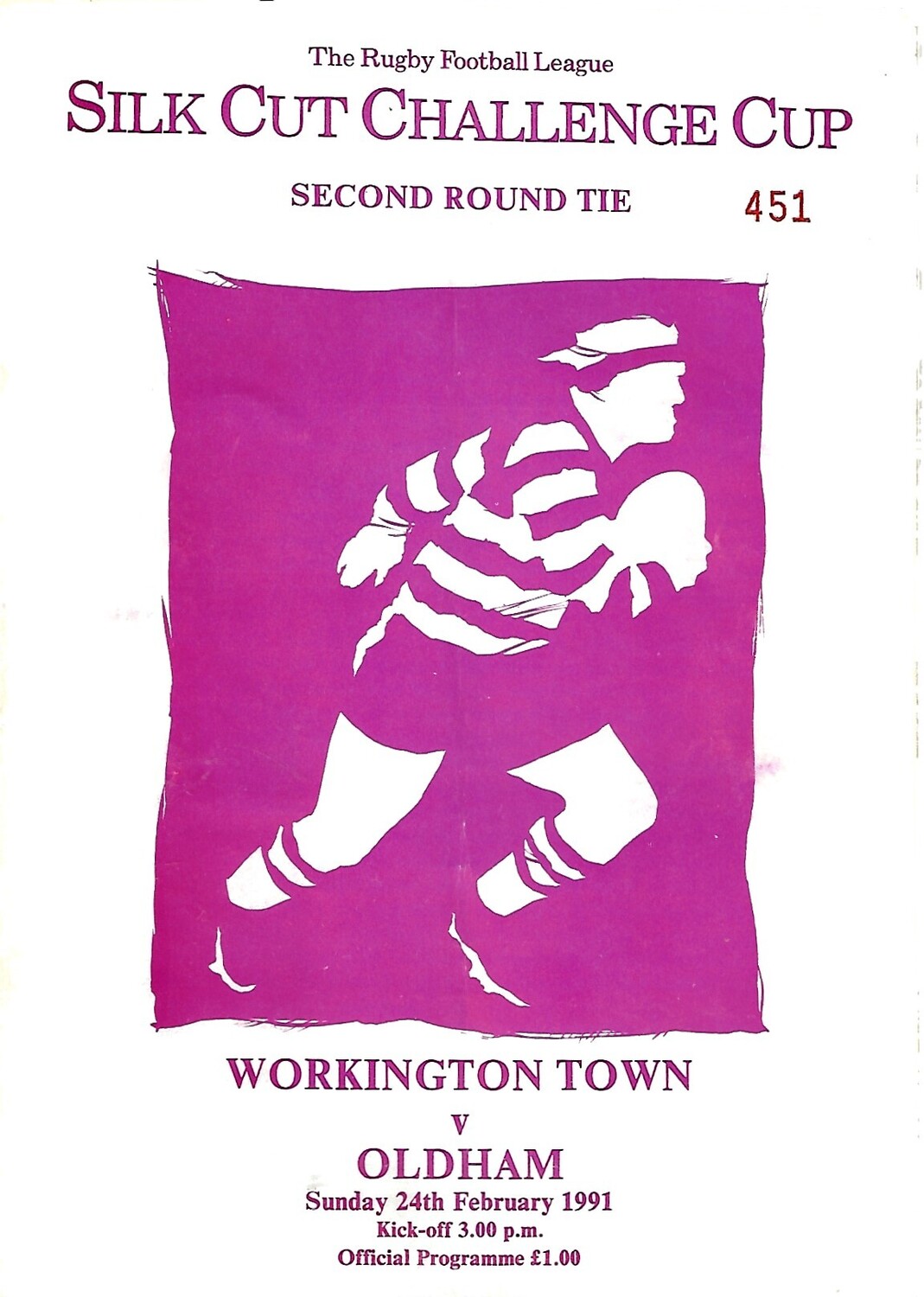 1990/91 Workington Town v Oldham Silk Cut Challenge Cup 2nd Round Rugby League Programme