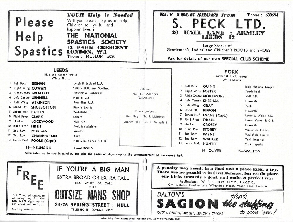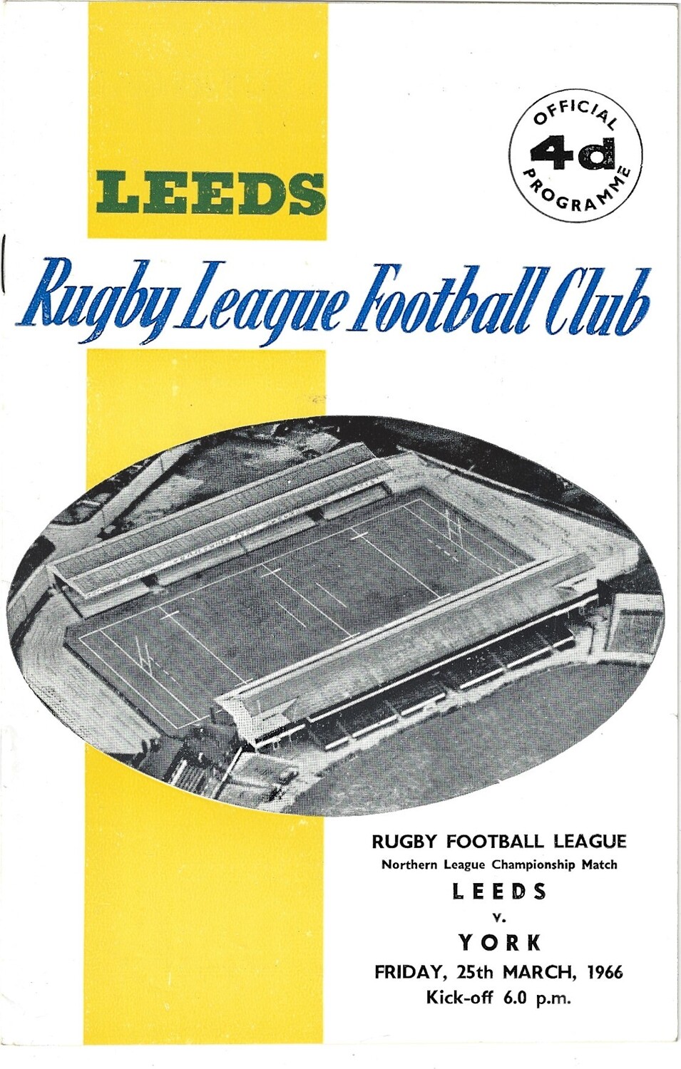 1965/66 Leeds v York Rugby League programme