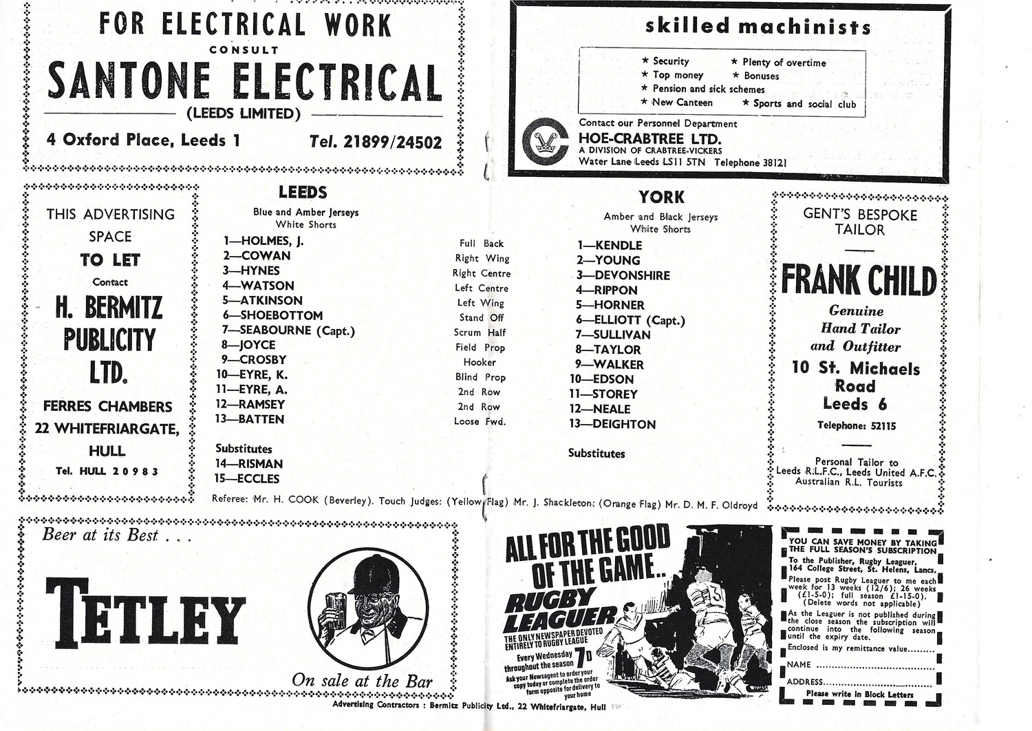 1969/70 Leeds v York (11/10/1969) Rugby League Programme