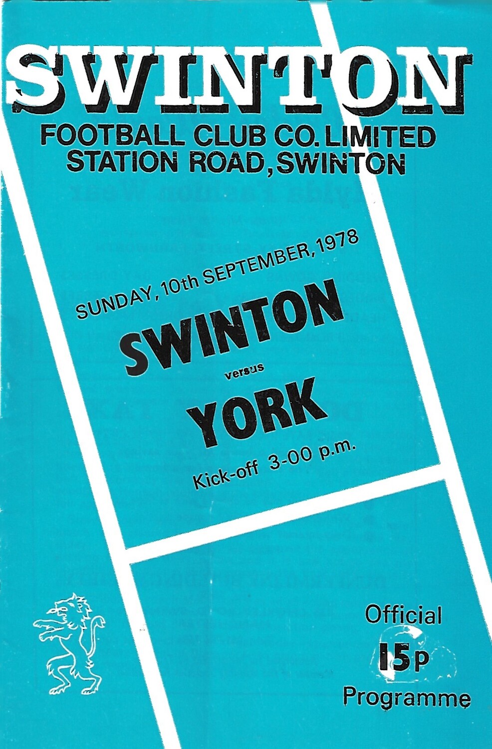 1978/79 Swinton v York Rugby League Programme