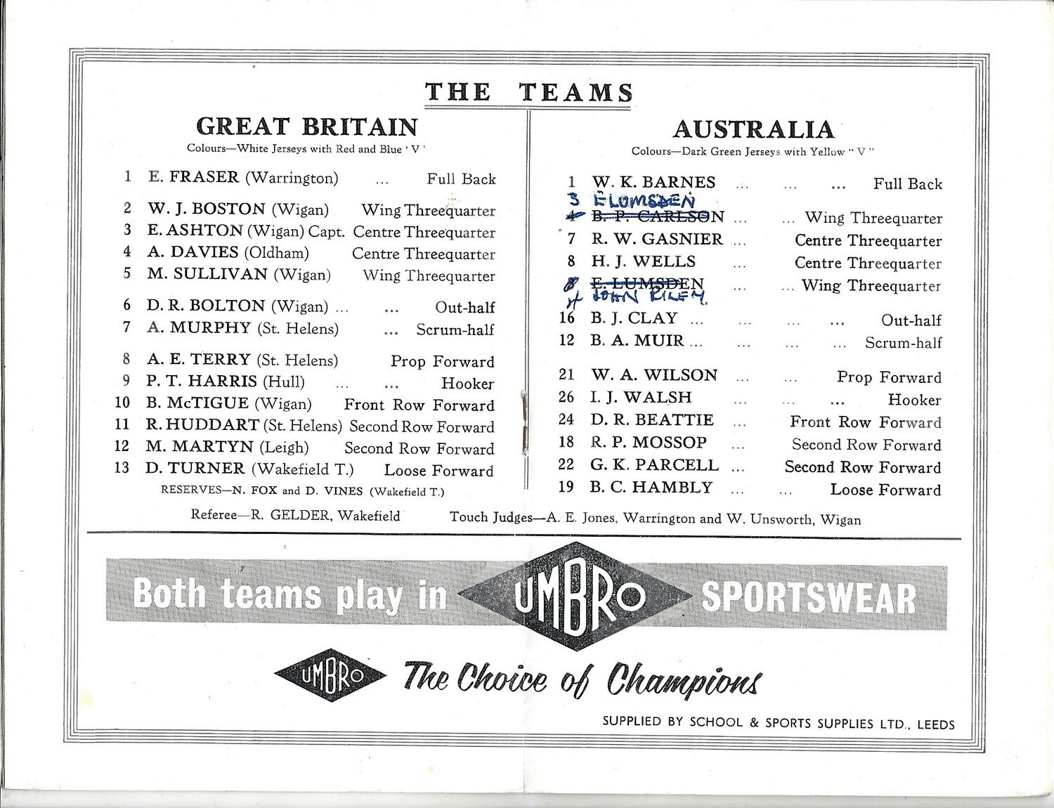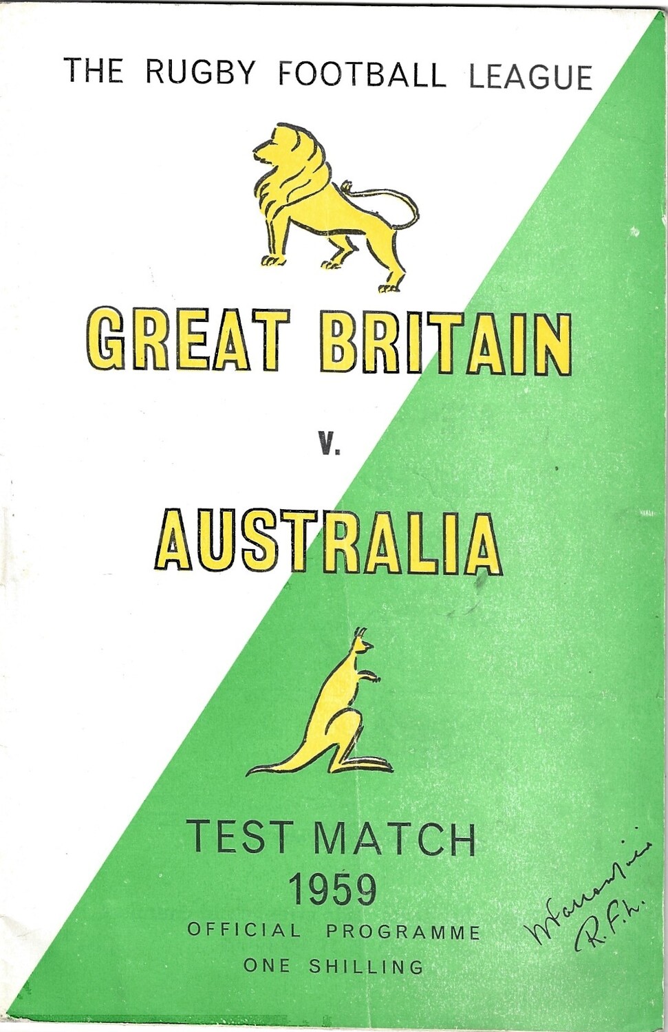 1959 Great Britain v Australia First Test Match Rugby League Programme