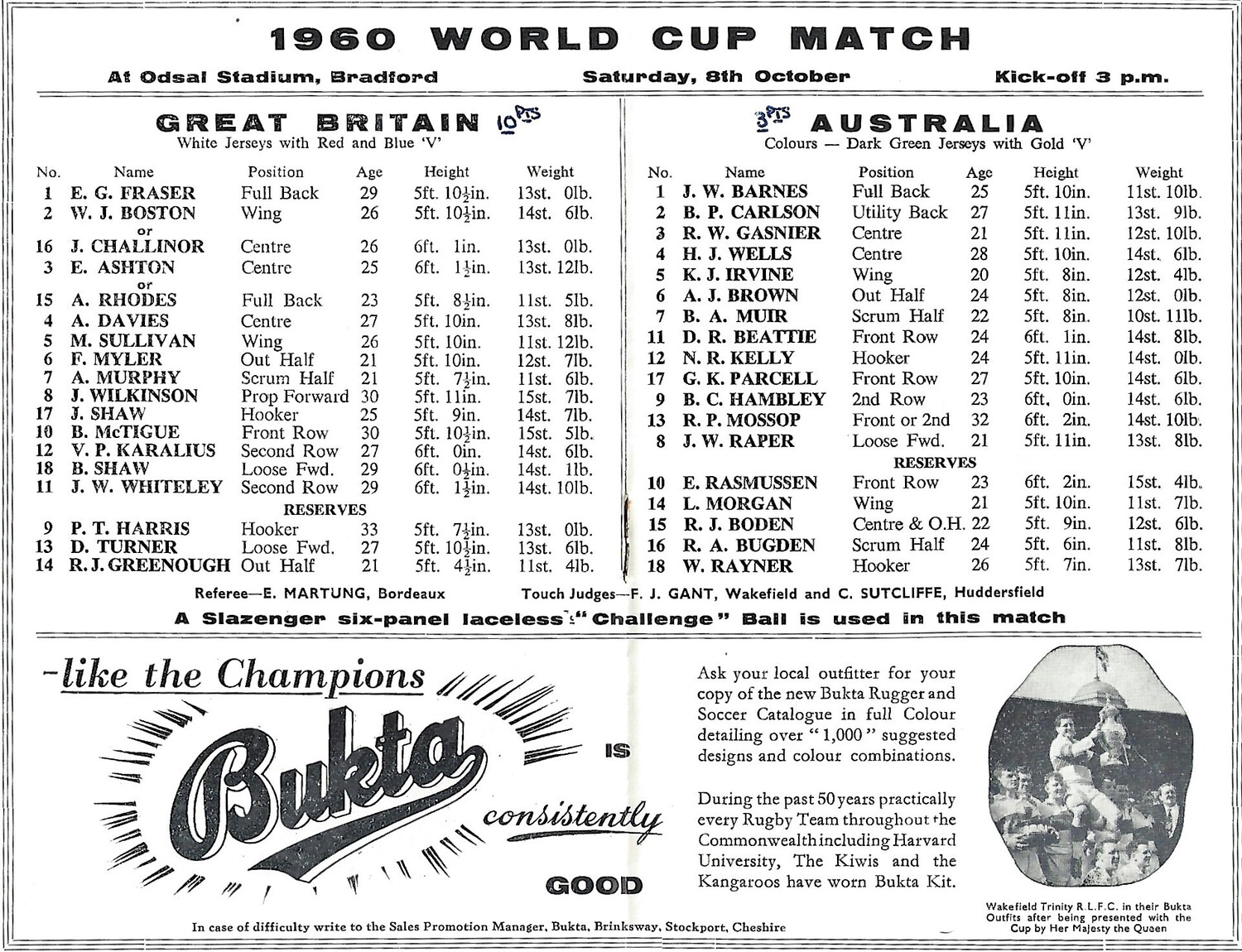 1960 Great Britain v Australia Rugby League World Cup Programme