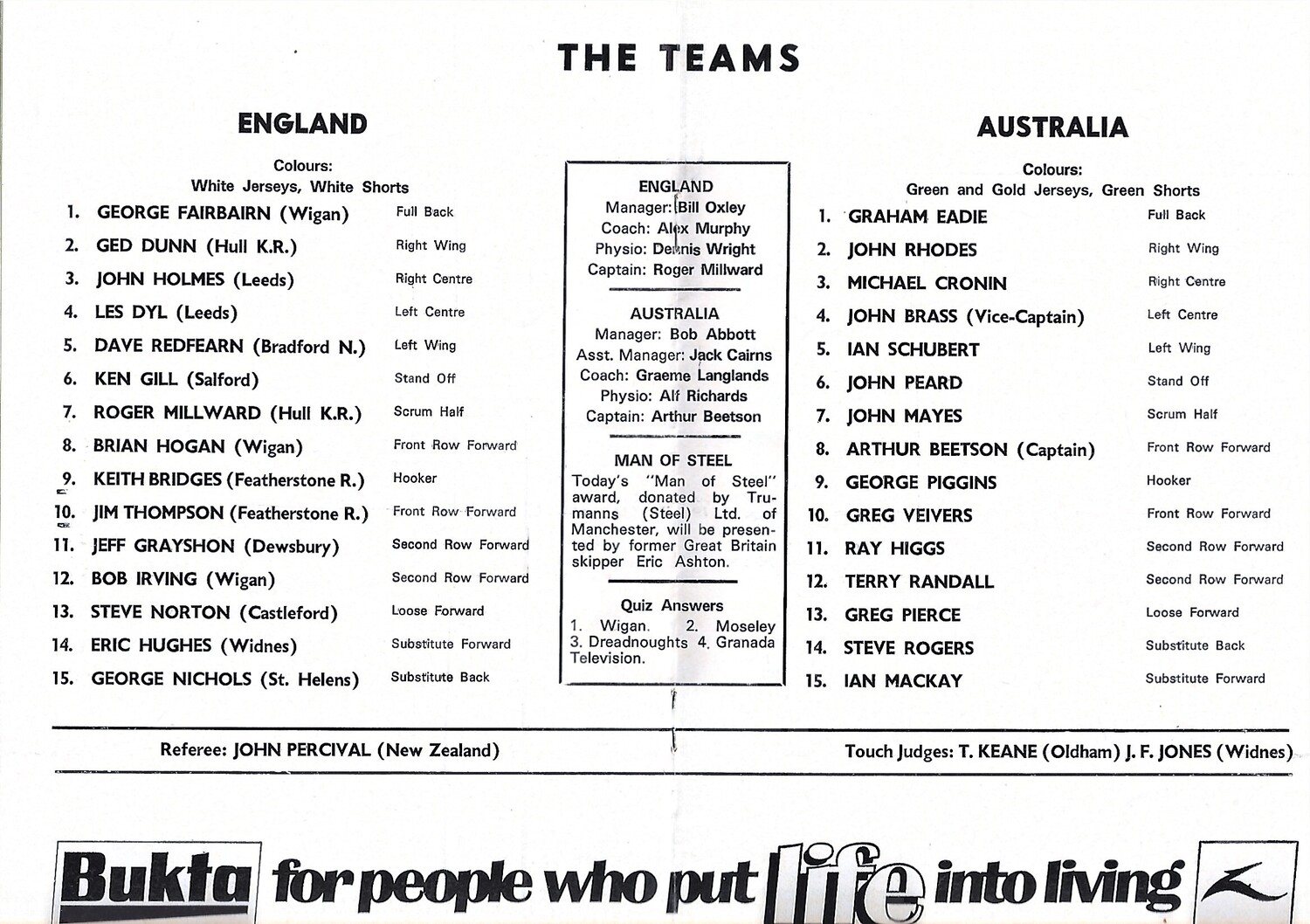 1975 England v Australia Rugby League World Cup Programme