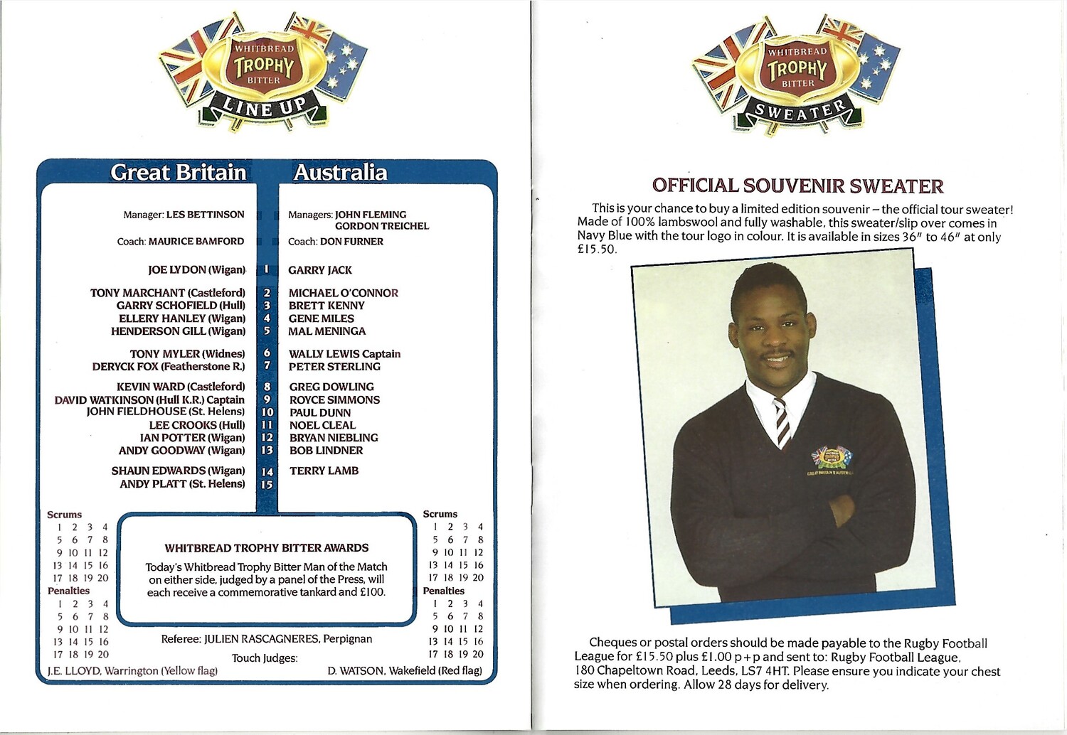 1986 Great Britain v Australia Second Test Match Rugby League Programme