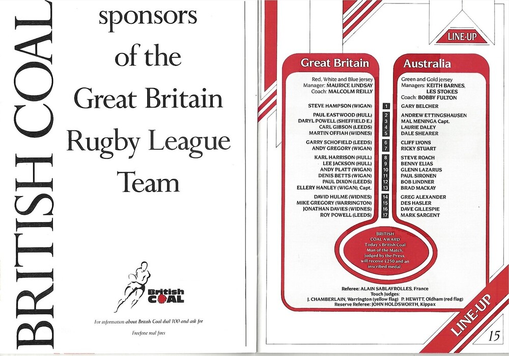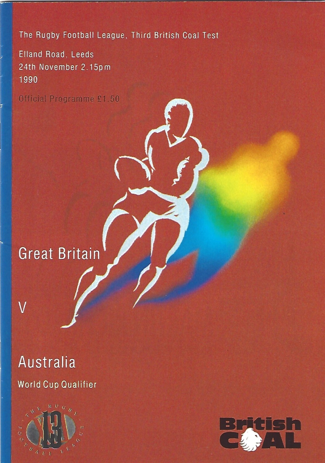 1990 Great Britain v Australia Third Test Match/World Cup Qualifier Rugby League Programme