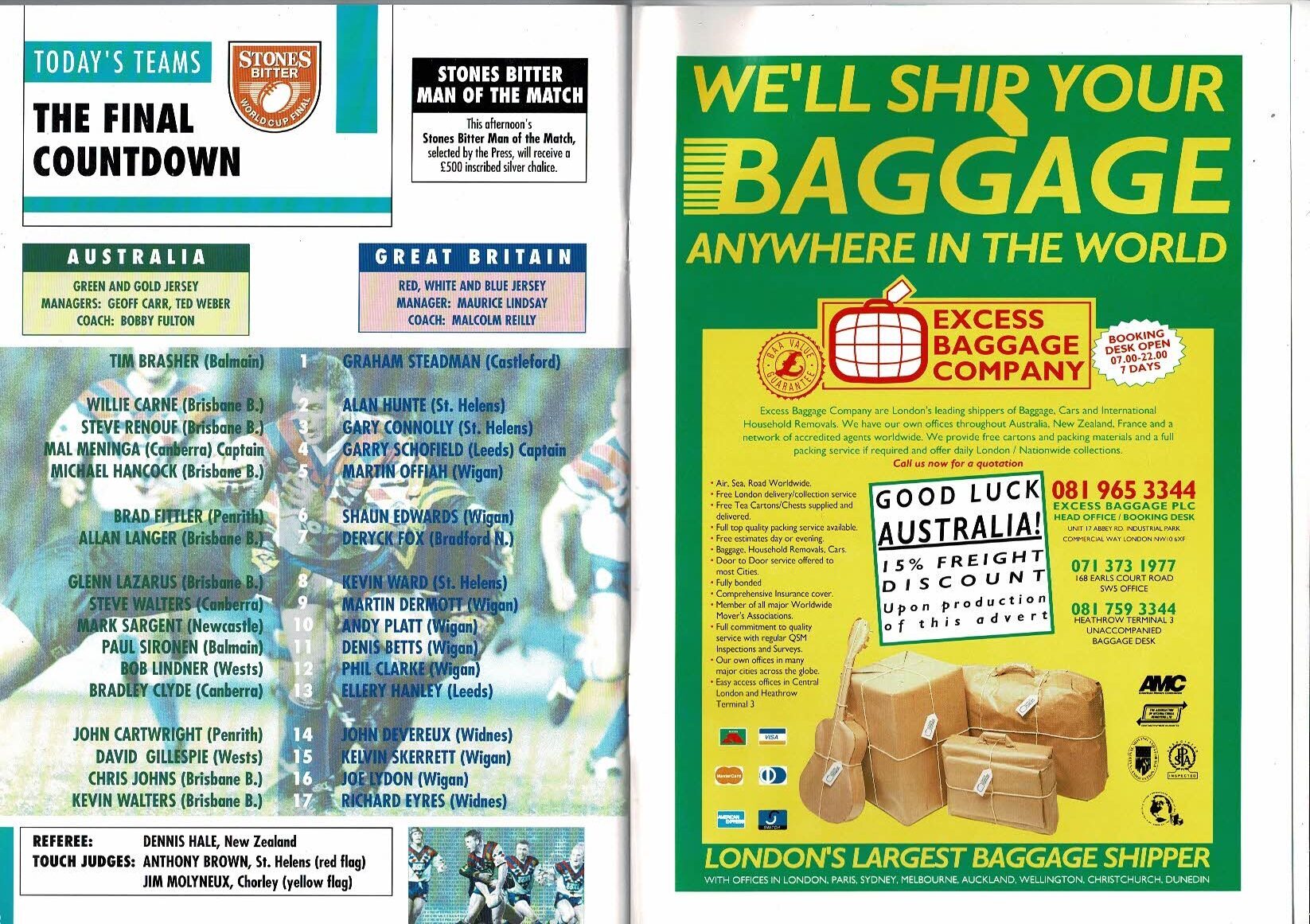 1992 Australia v Great Britain Rugby World Cup Final Programme & Match Ticket