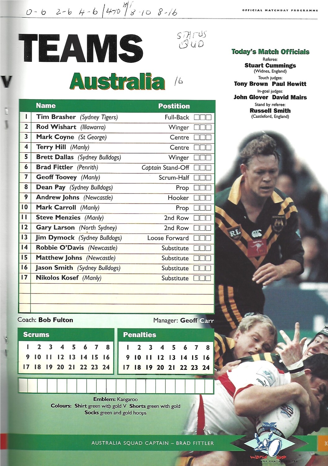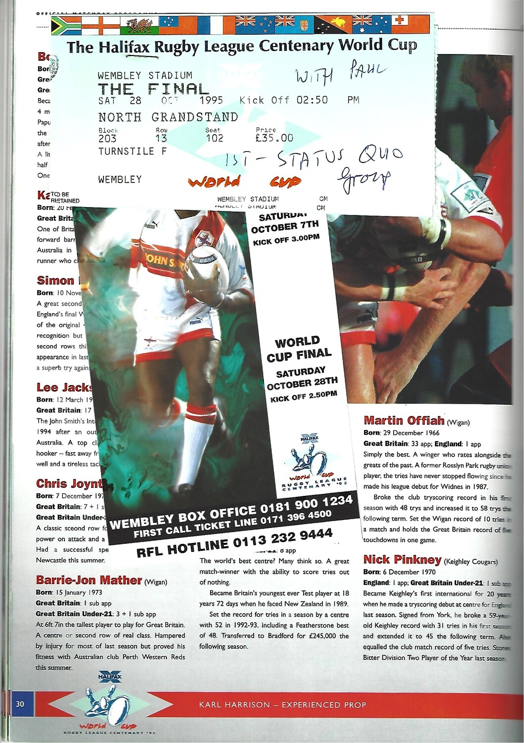 1995 England v Australia Rugby League World Cup Final Programme & Match Ticket