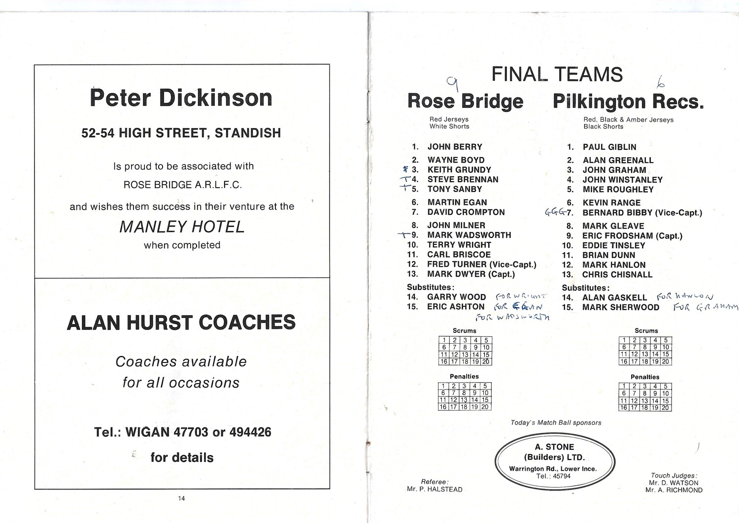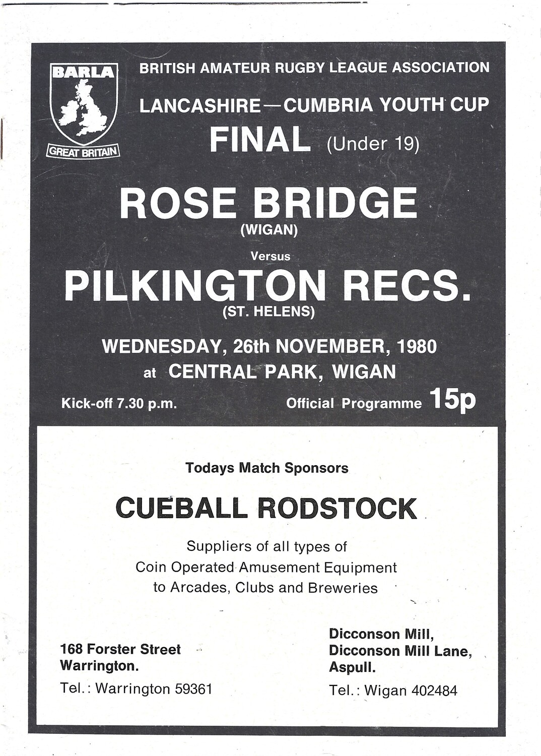 1980 Rose Bridge v Pilkington Recs (26/11/1980) BARLA Lancashire/Cumbria Youth Cup Final Rugby League Programme
