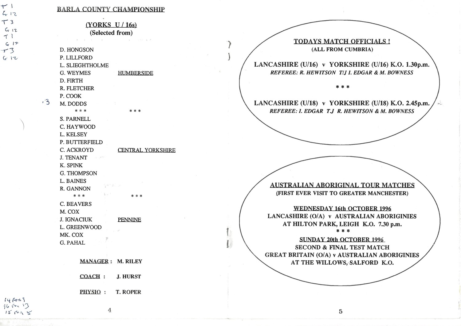 1996 Lancashire v Yorkshire (13/10/1996) BARLA County Championship Youth & Junior Rugby League Programme