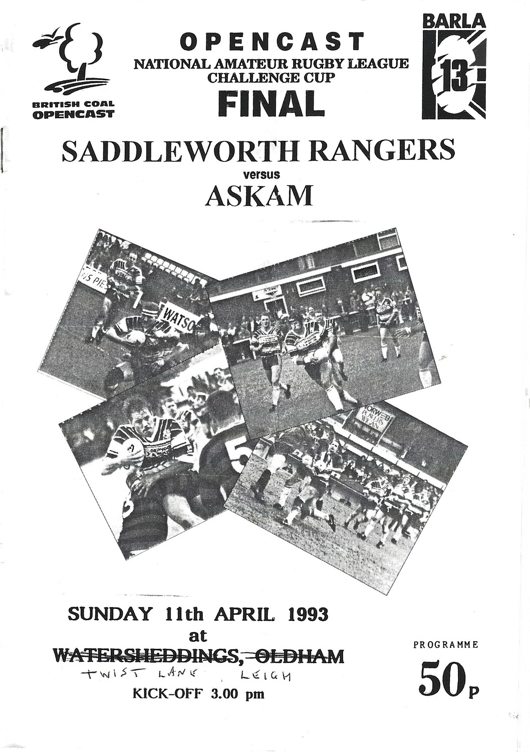 1993 Saddleworth Rangers v Askam (11/04/1993) BARLA National Amateur Rugby League Challenge Cup Final Rugby League Programme
