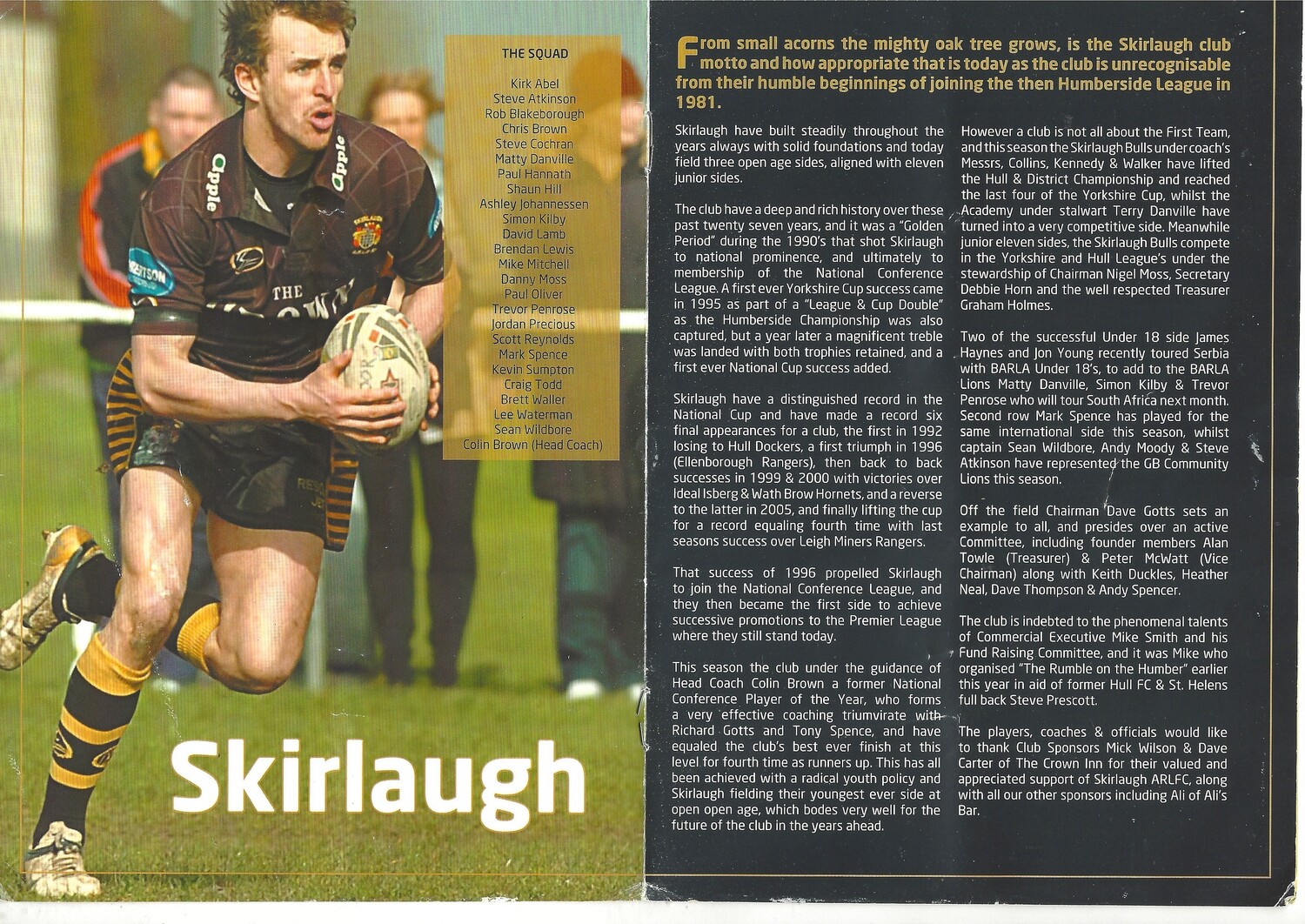 2007 Skirlaugh v Leigh Miners Rangers (19/05/2007) National Conference League Grand Final Rugby League Programme